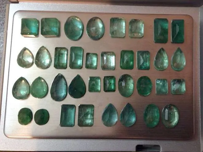 کل نگین ها با هم فروخته میشن زمرد طبیعی ، اصل معدنی ابعاد در تصویر مشخص شده به درخواست خریدار ( قبل از پرداخت و خرید ) امکان صدور شناسنامه برای هر عدد وجود داره برای اینکه بدونید origin کجا هستن ( هزینه ی صدور شناسنامه به عهده ی خریدار محترم هست ، هزینه ی صدور شناسنامه برای کل مجموعه هر قطعه نگین 500 هزار تومان )