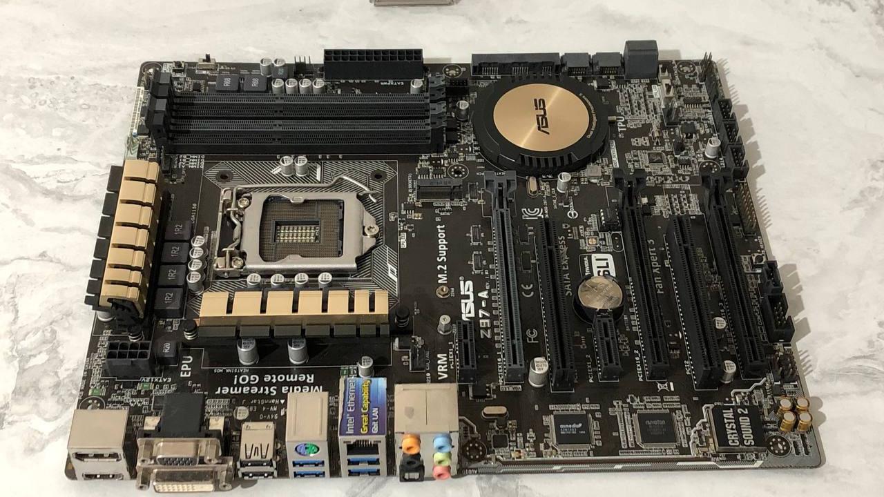 مادربرد حرفه ای و کمیاب DDR3 برند ایسوس مدل ASUS Z97-A سوکت 1150 چیپست سری Z و پشتیبانی از تمام سی پی یو های نسل چهارم اینتل مناسب برای سیستم گیمینگ مطابق تصاویر و مجهز به :