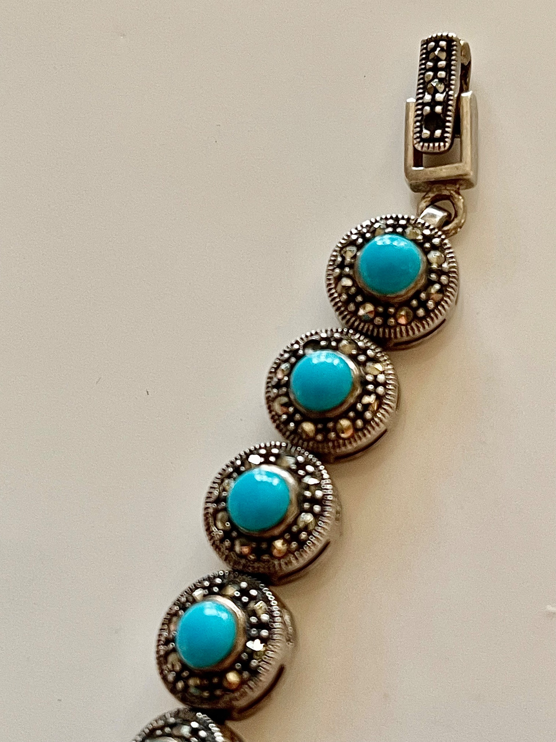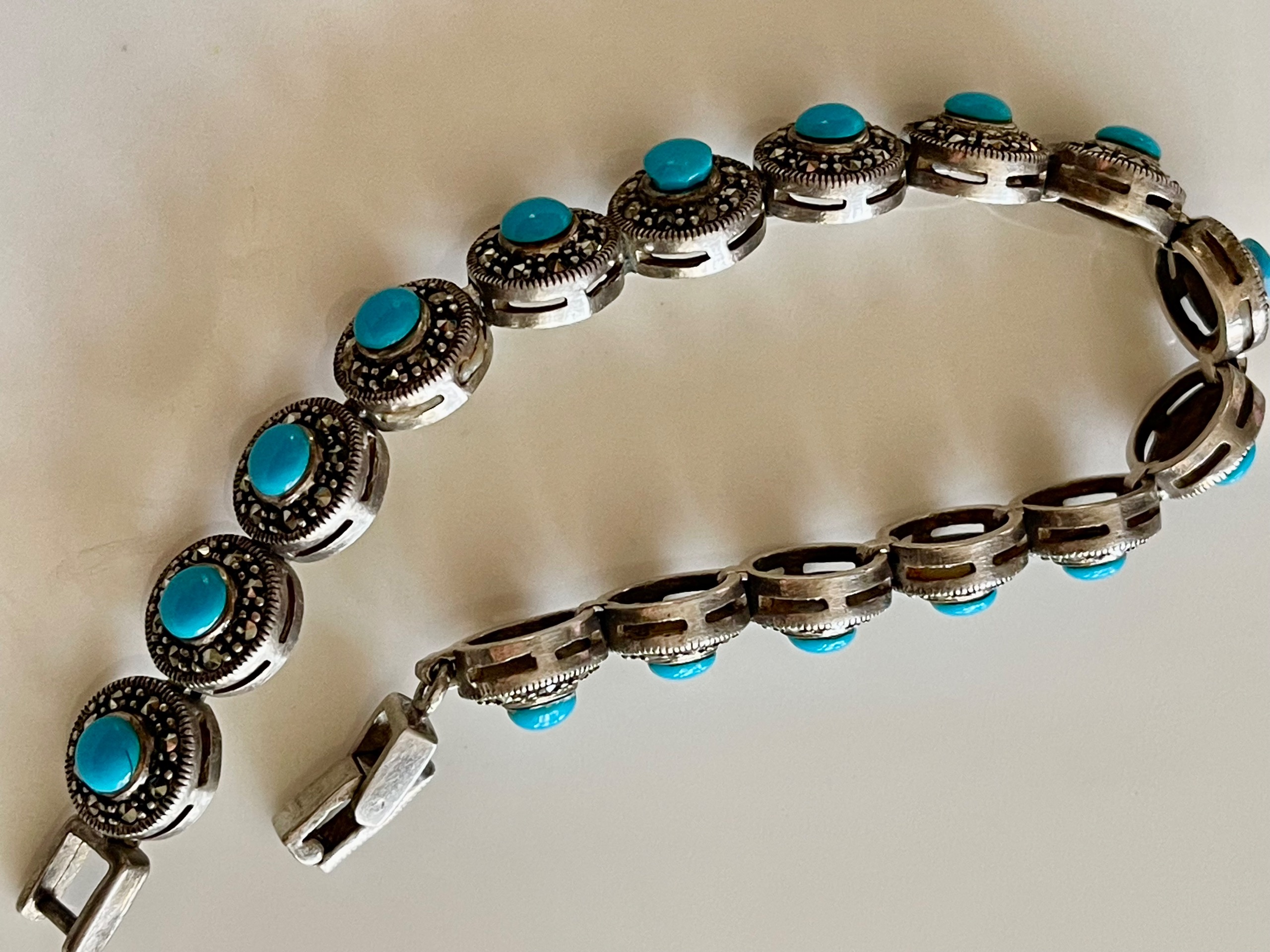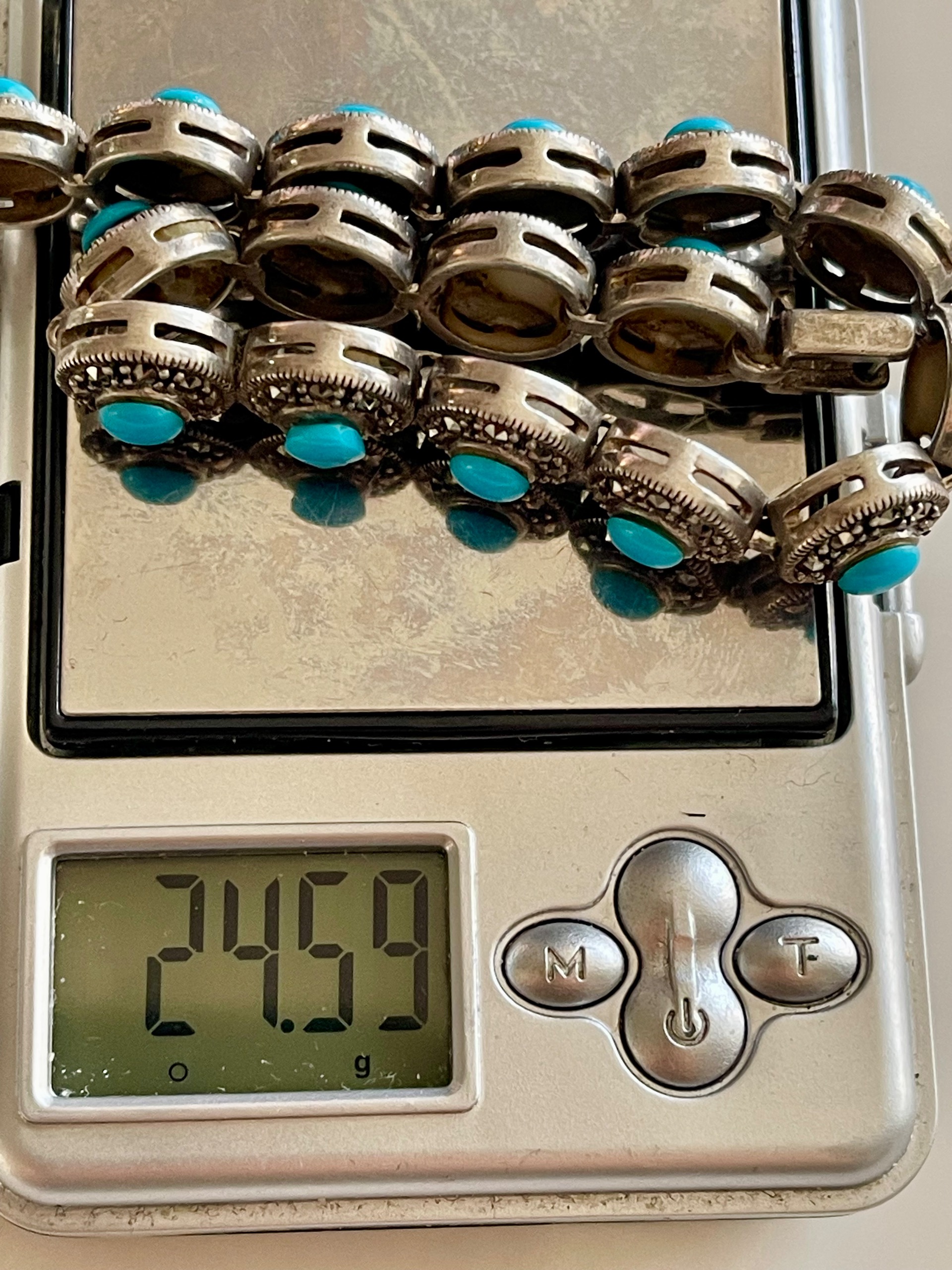 دستبند نقره فیروزه عجمی قدیمی با وزن 24/59 گرم انتیک زیبا زیر قیمت جهت سرمایه گذاری عالی میباشد .