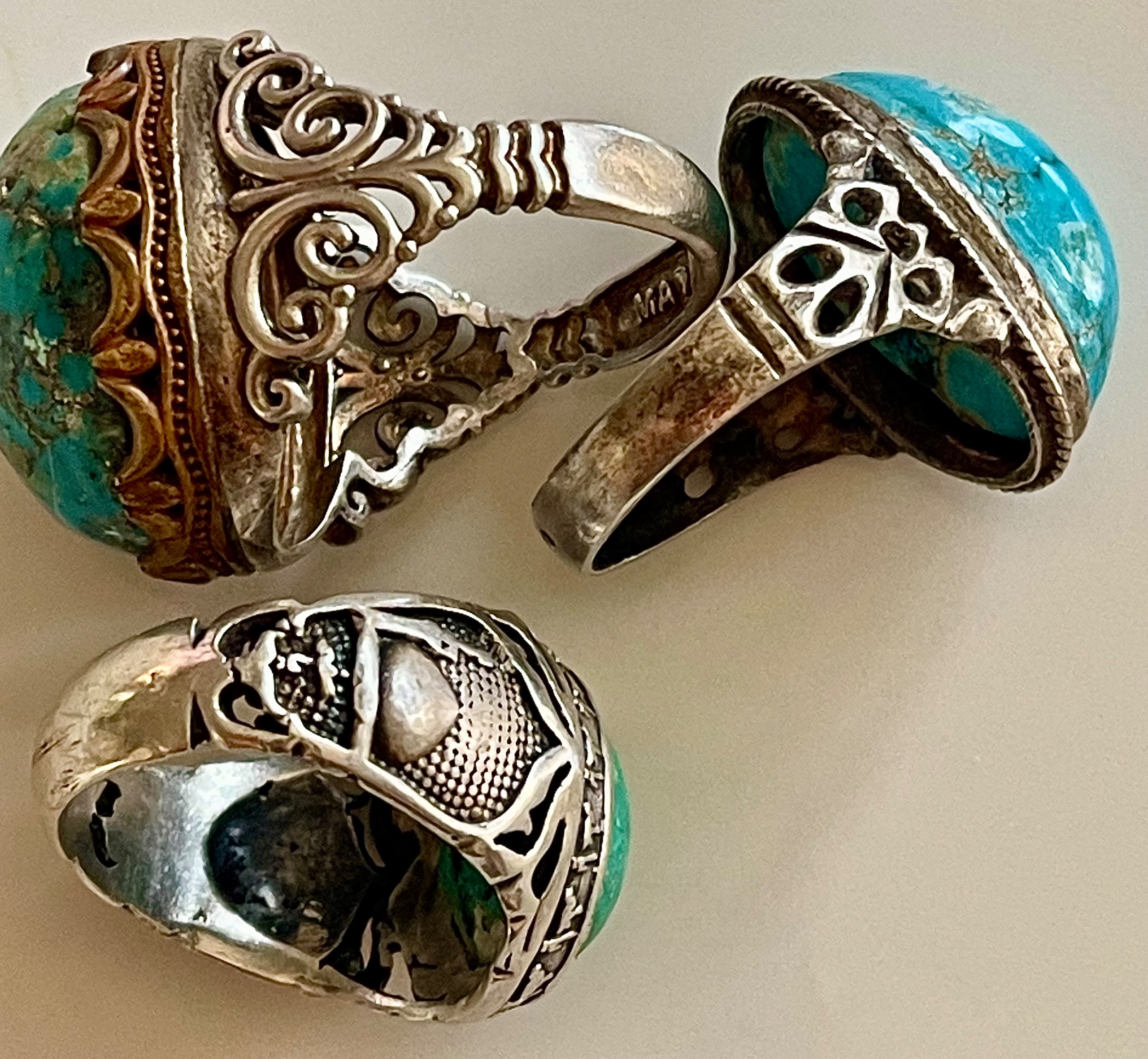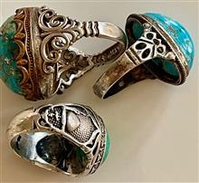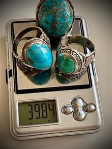فروش 3 عدد انگشتر قدیمی دست ساز فیروزه 39 گرم