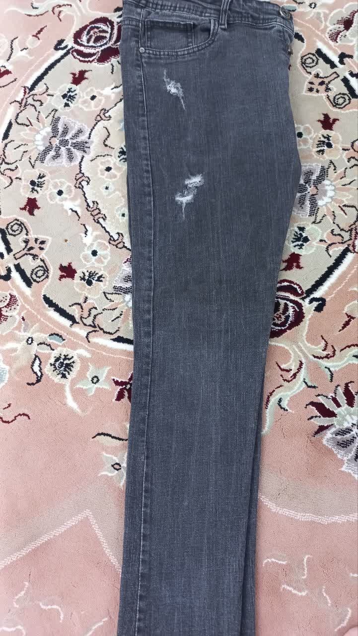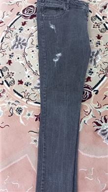 شلوار جین راسته زاپ دار ذغالی سایز L قد100