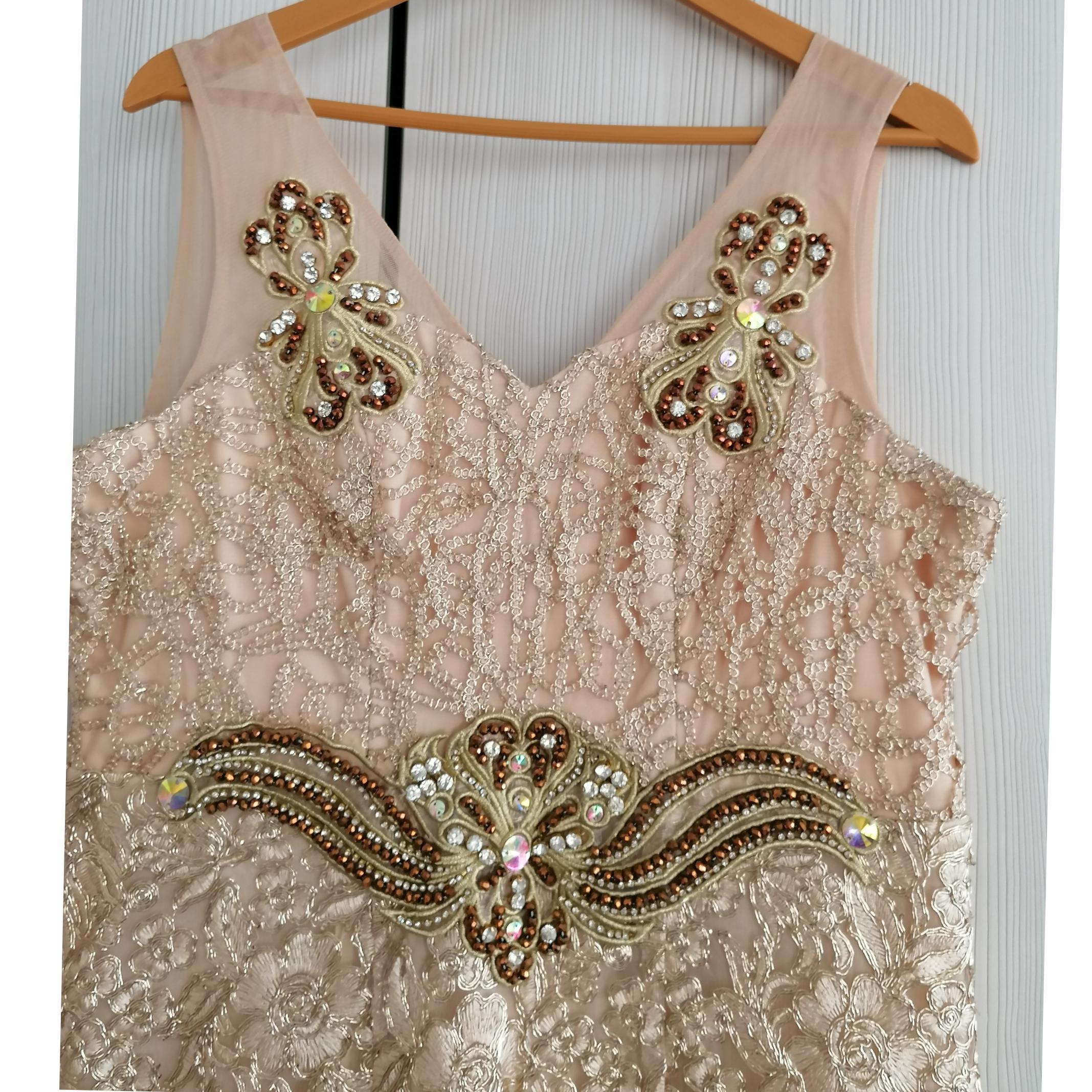پیراهن مجلسی زنانه فقط یکبار پوشیده شده ،بالاتنه منجوق دوزی شده