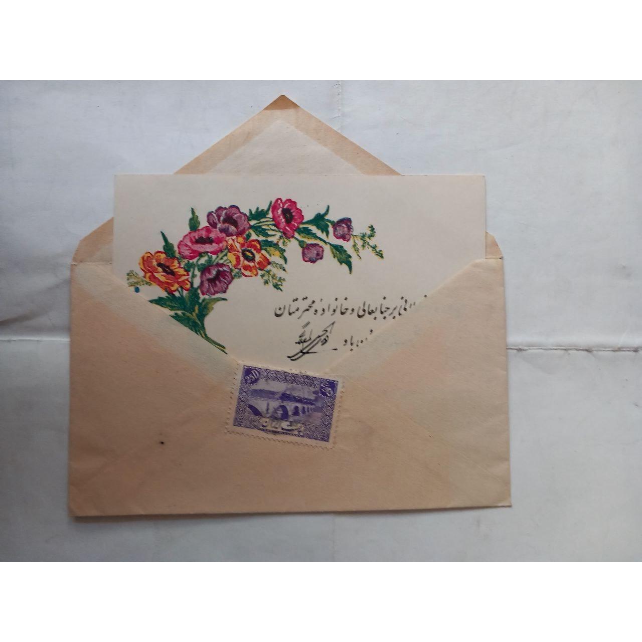 کارت تبریک قدیمی به همراه تمبر و پاکت نامه