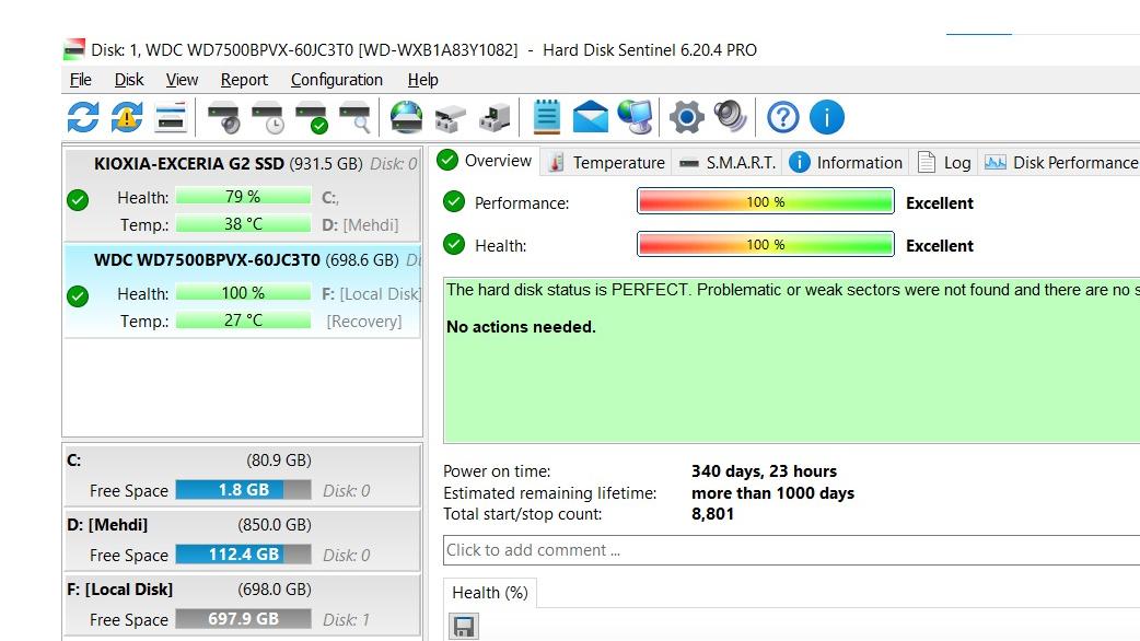 هارد لپ تاپ وسترن دیجیتال 750 گیگ سلامت 100 درصد