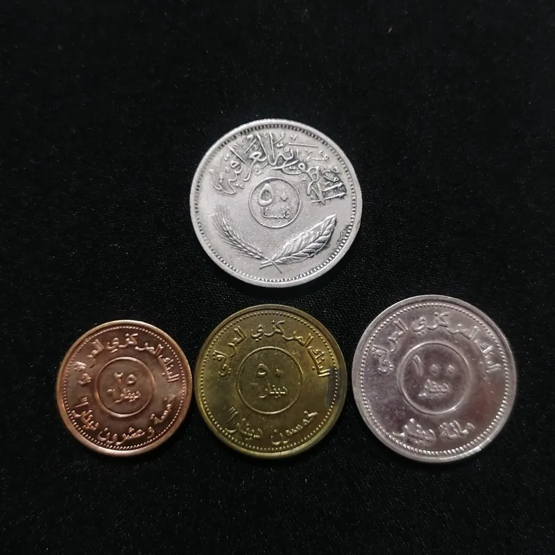 سکه ها شامل سکه 25،50، 100 دینار و 50 فلسا می باشد.