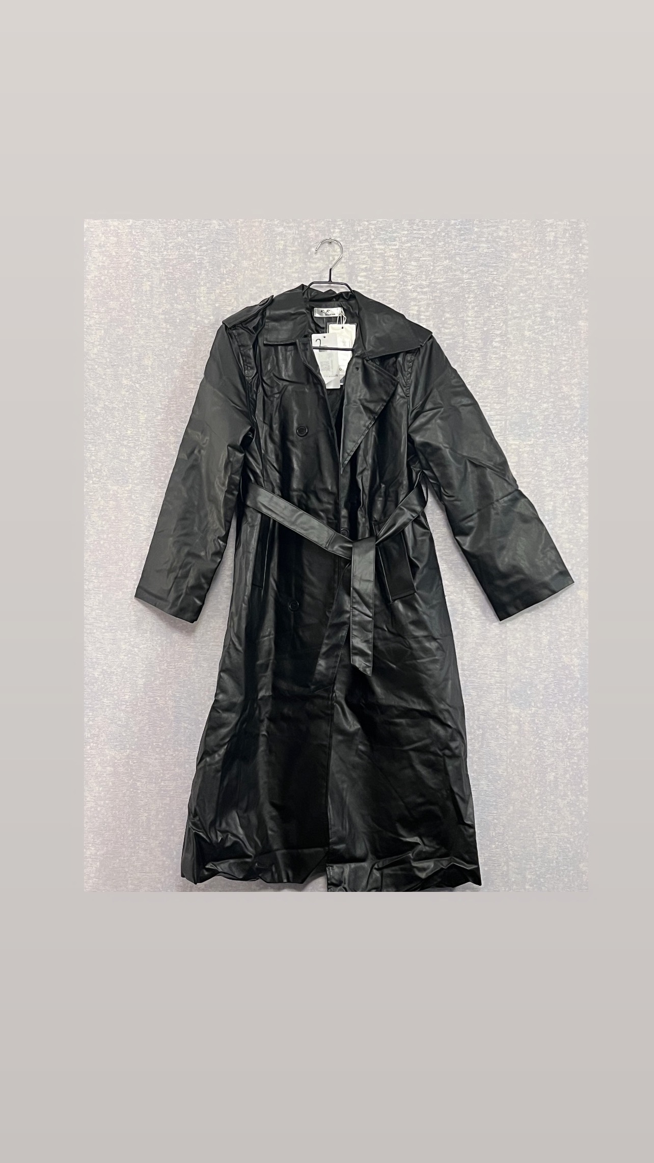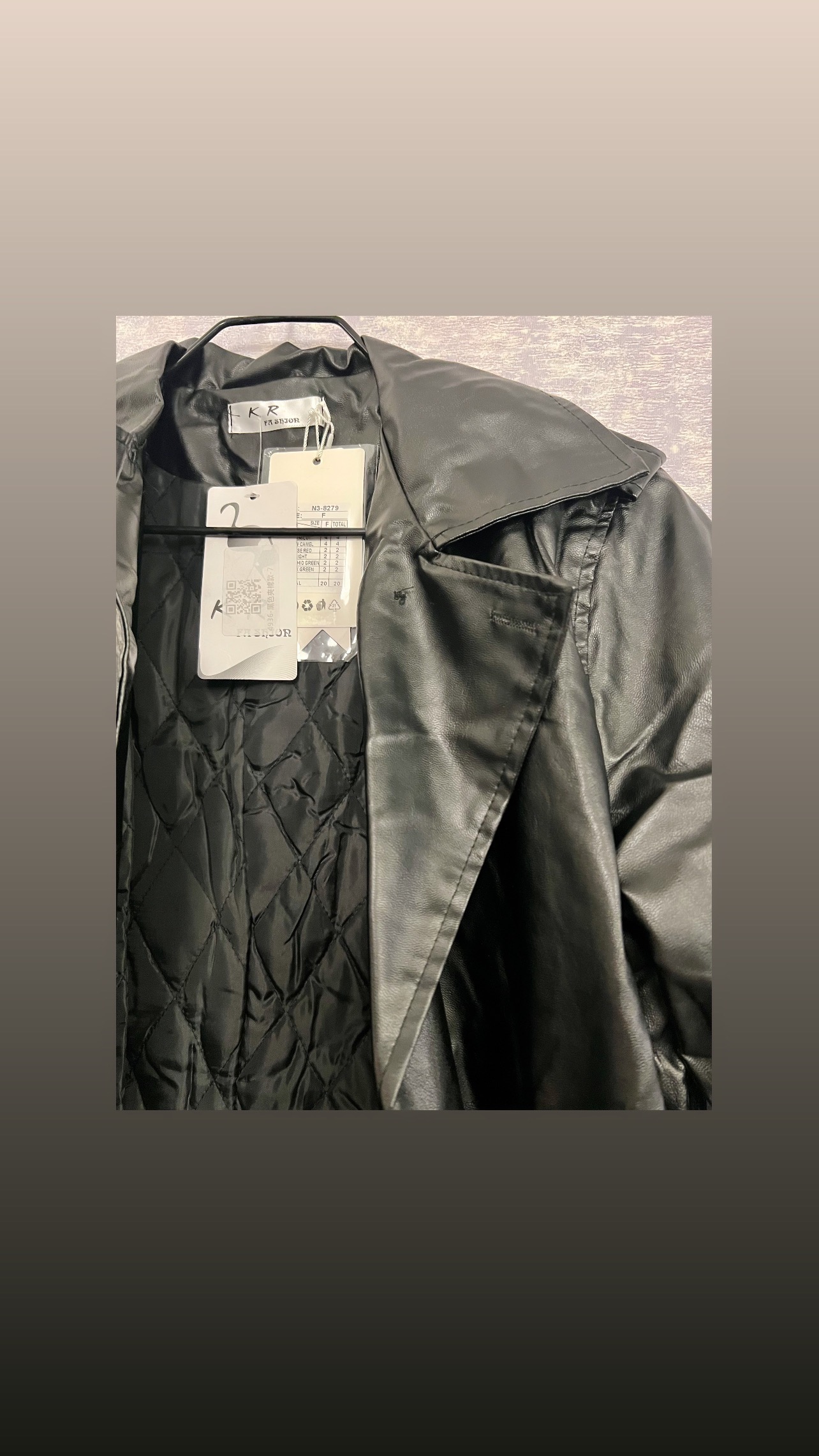 یک پالتوی بلند و بسیار خوشدوخت از جنس چرم مصنوعی باکیفیت