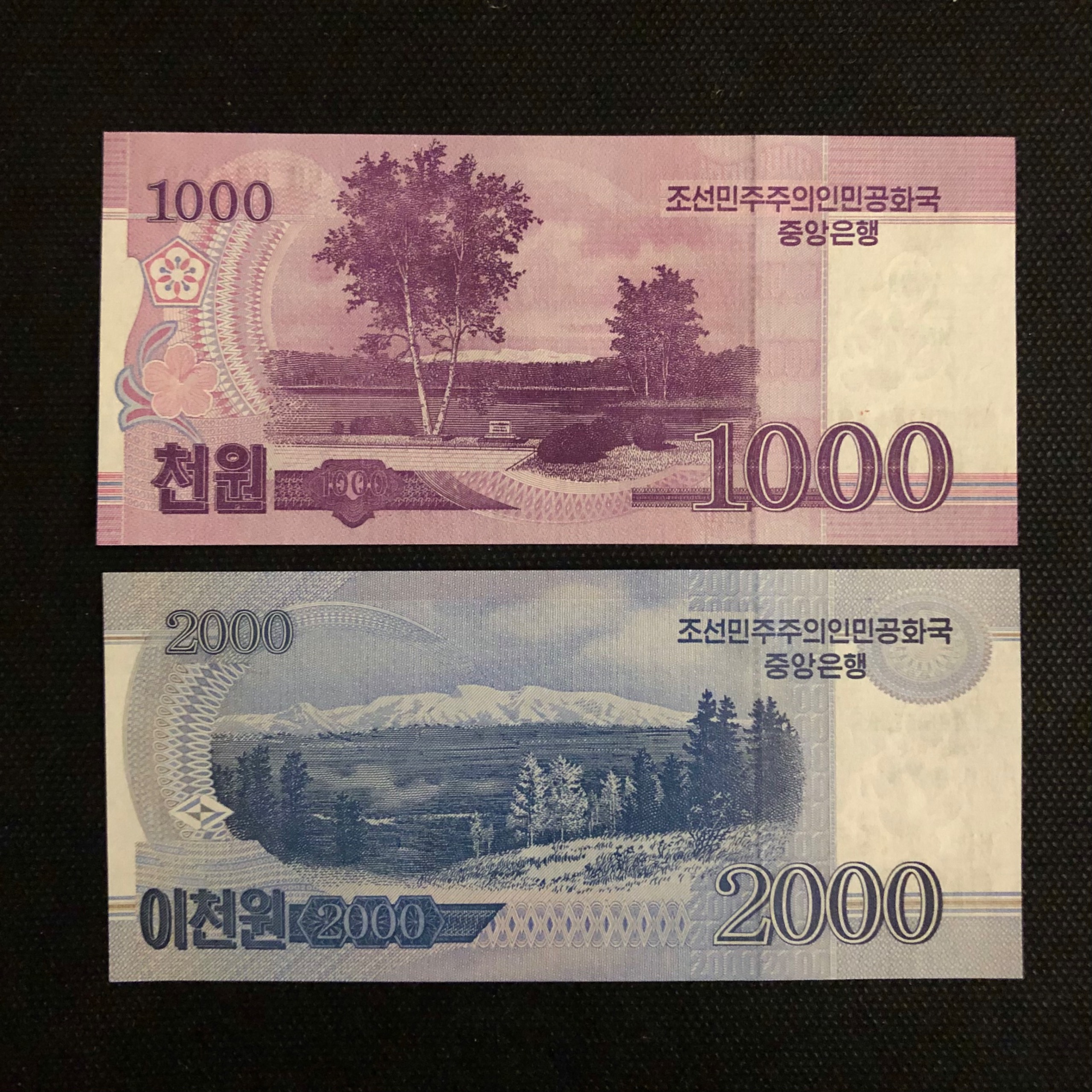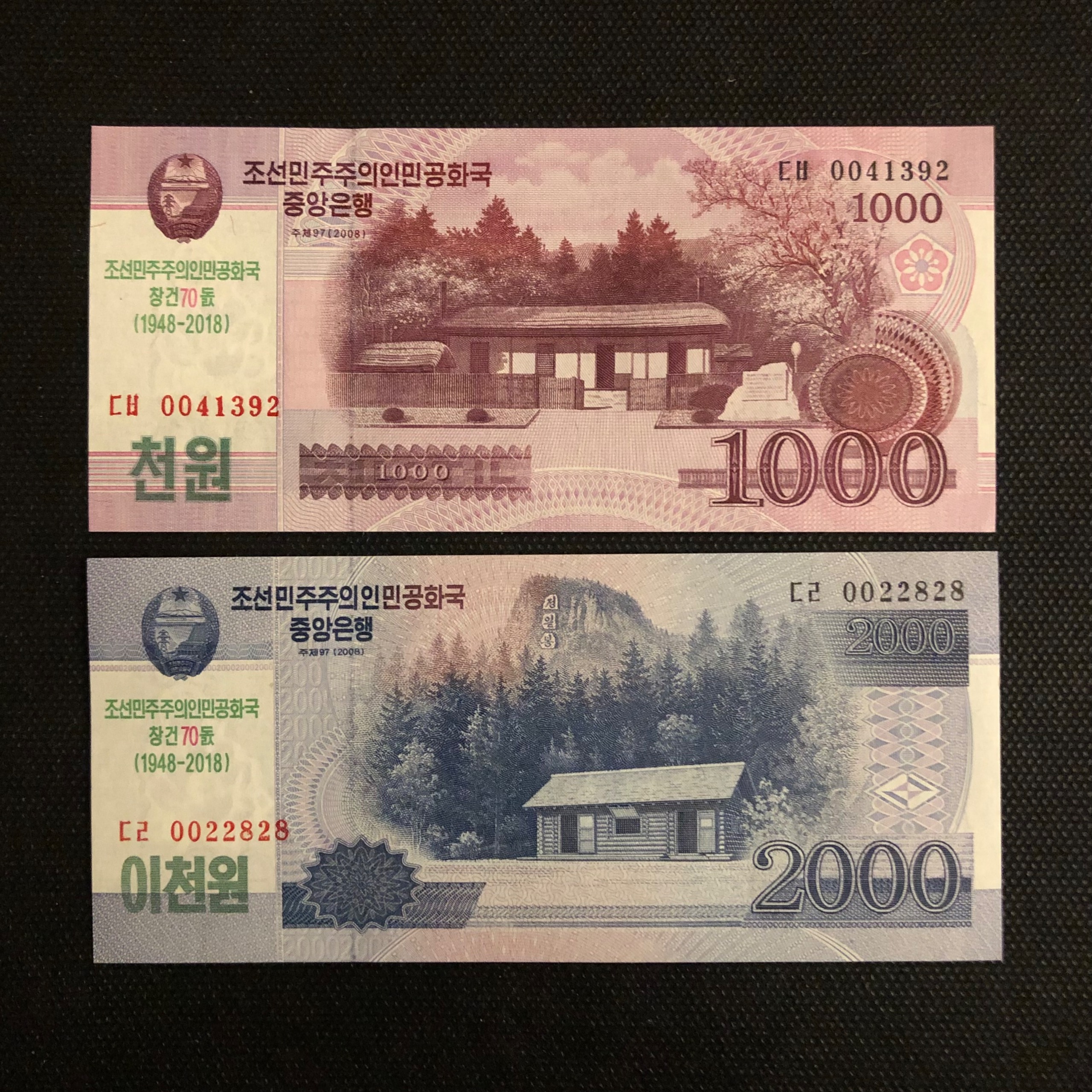 دوعدد اسکناس 1000و2000وون کره شمالی شماره متفاوت
