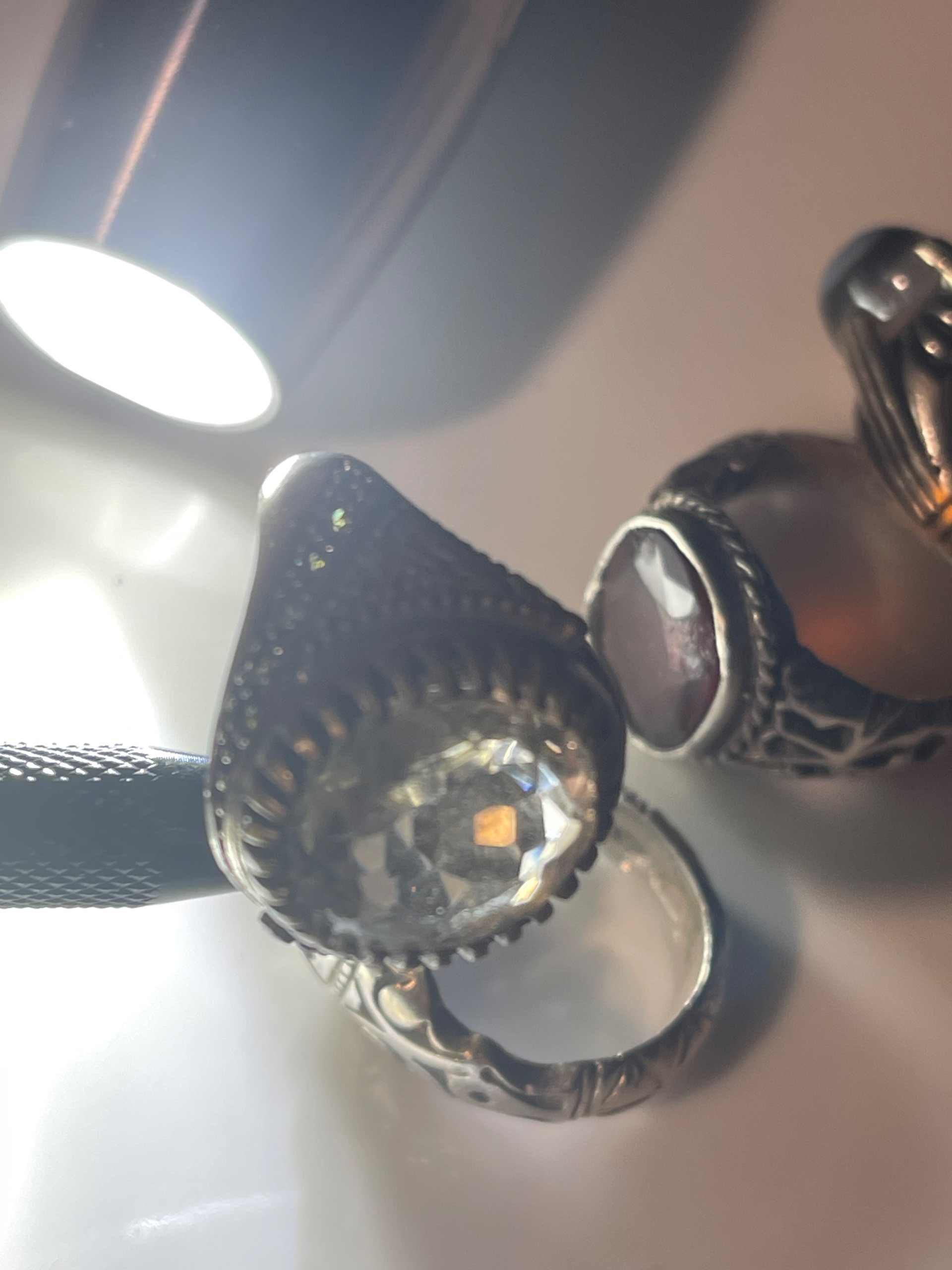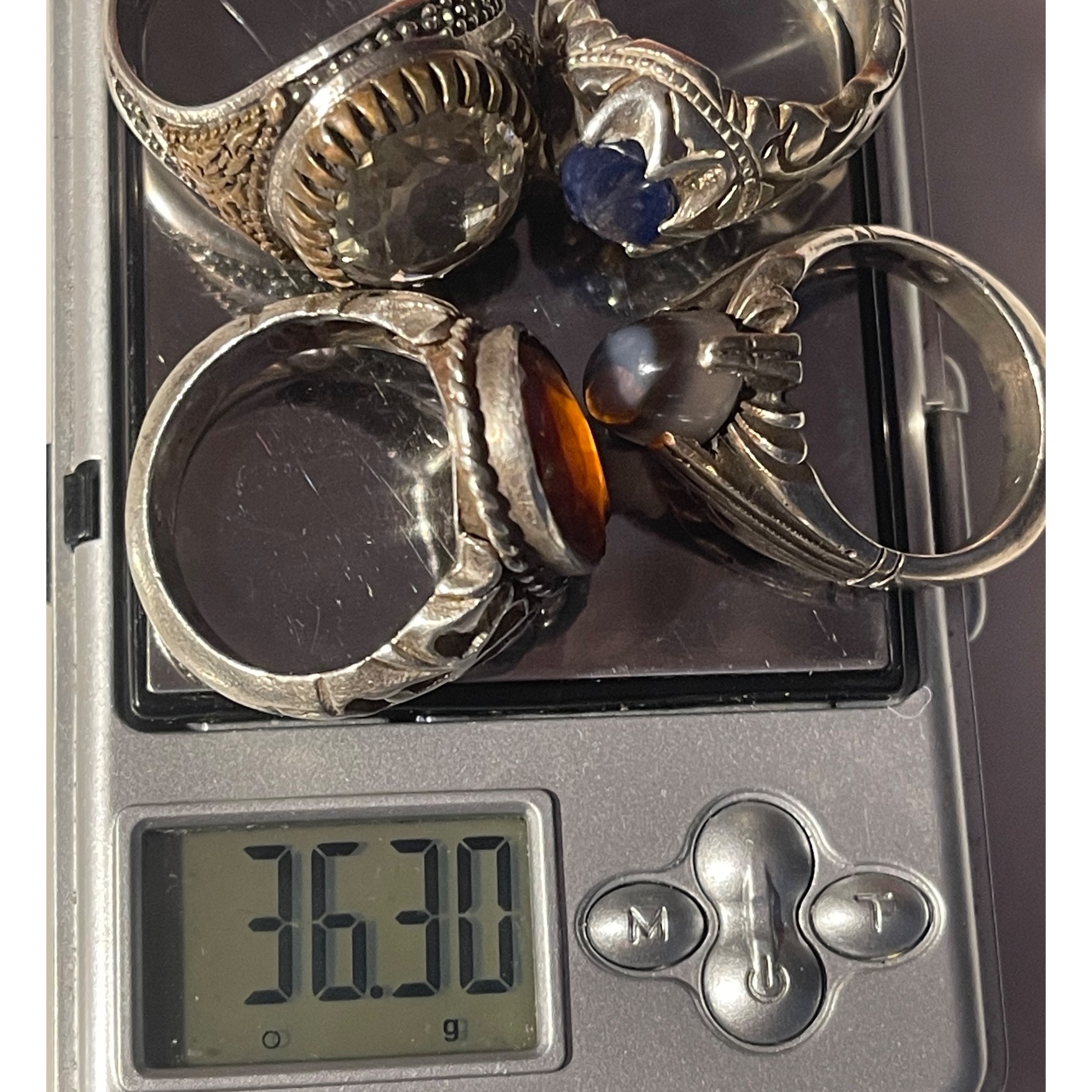 فروش 4 عدد انگشتردست ساز قدیمی نقره با سنگ یاقوت کبود طبیعی - گارنت طبیعی - باباقوری - سیترین جمع وزن با سنگ و نقره 36 گرم