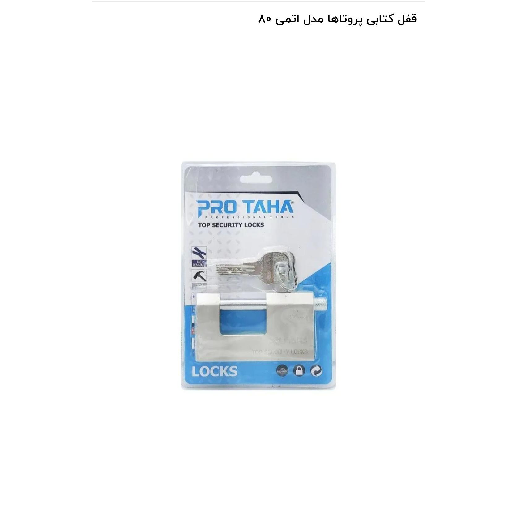 قفل کتابی پروتاها اتمی 80 دارای یه بدنه یک تیکه از جنس فولاد ضد برش است . توپی قفل از جنس برنج است که در مقابل رطوبت و ساییدگی مقاوم است هم چنین بصورتی طراحی شده که مانع از ورود کلیدهای متفرقه به آن می شود . این قفل دارای 4 کلید ویژه کامپیوتری است . میله و مغزی قفل در یک طرف قفل دارد تا برای چفت های نزدیک به دیوار قابل استفاده باشد همچنین دهانه ی قفل سه سانت و نیم است .