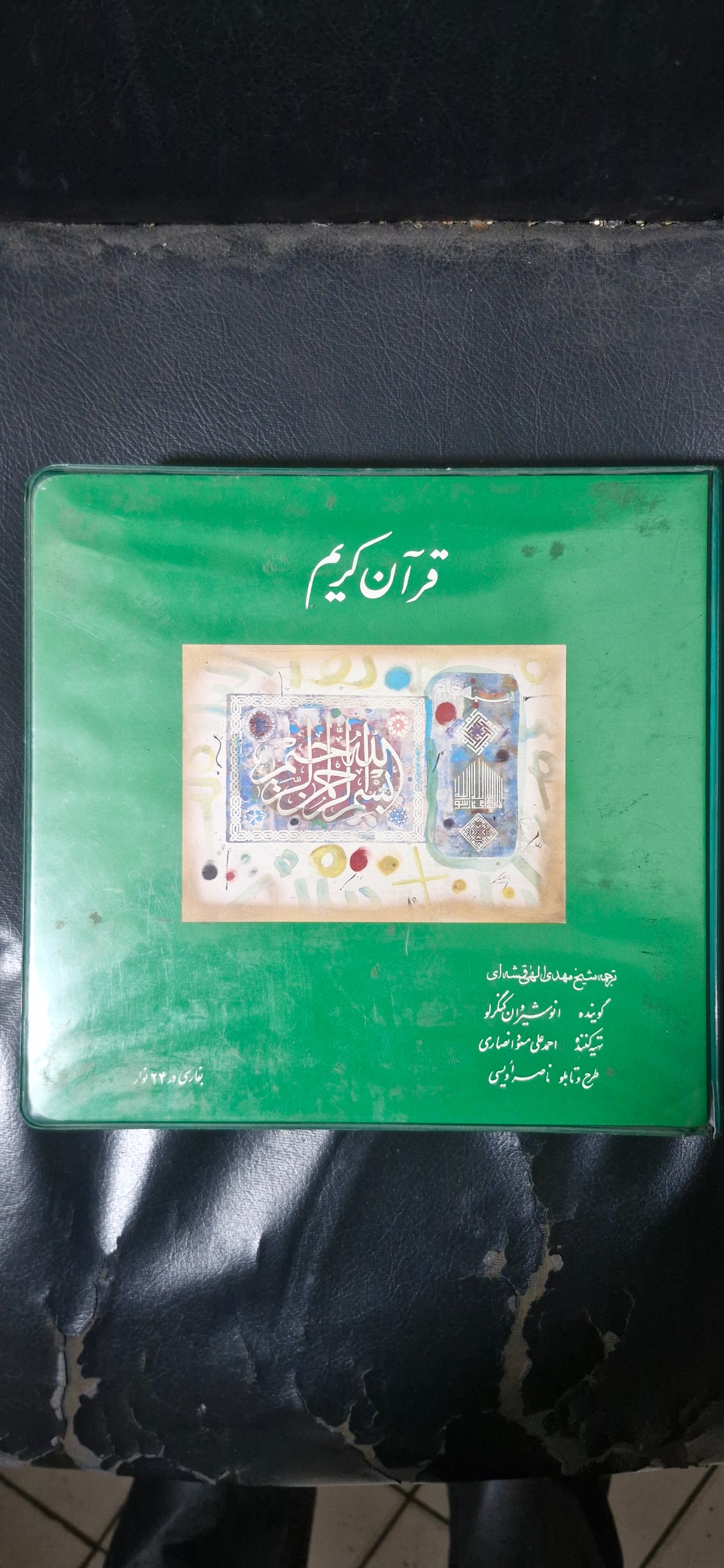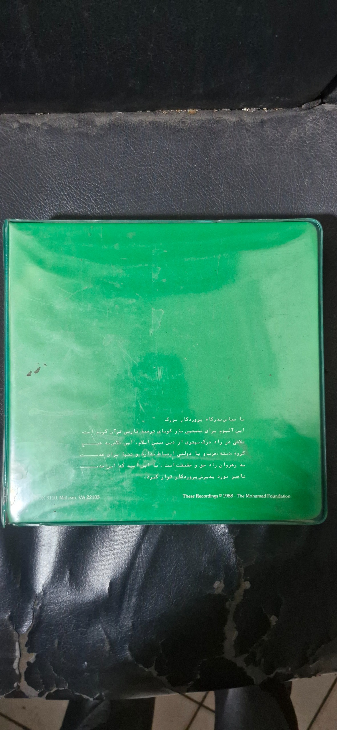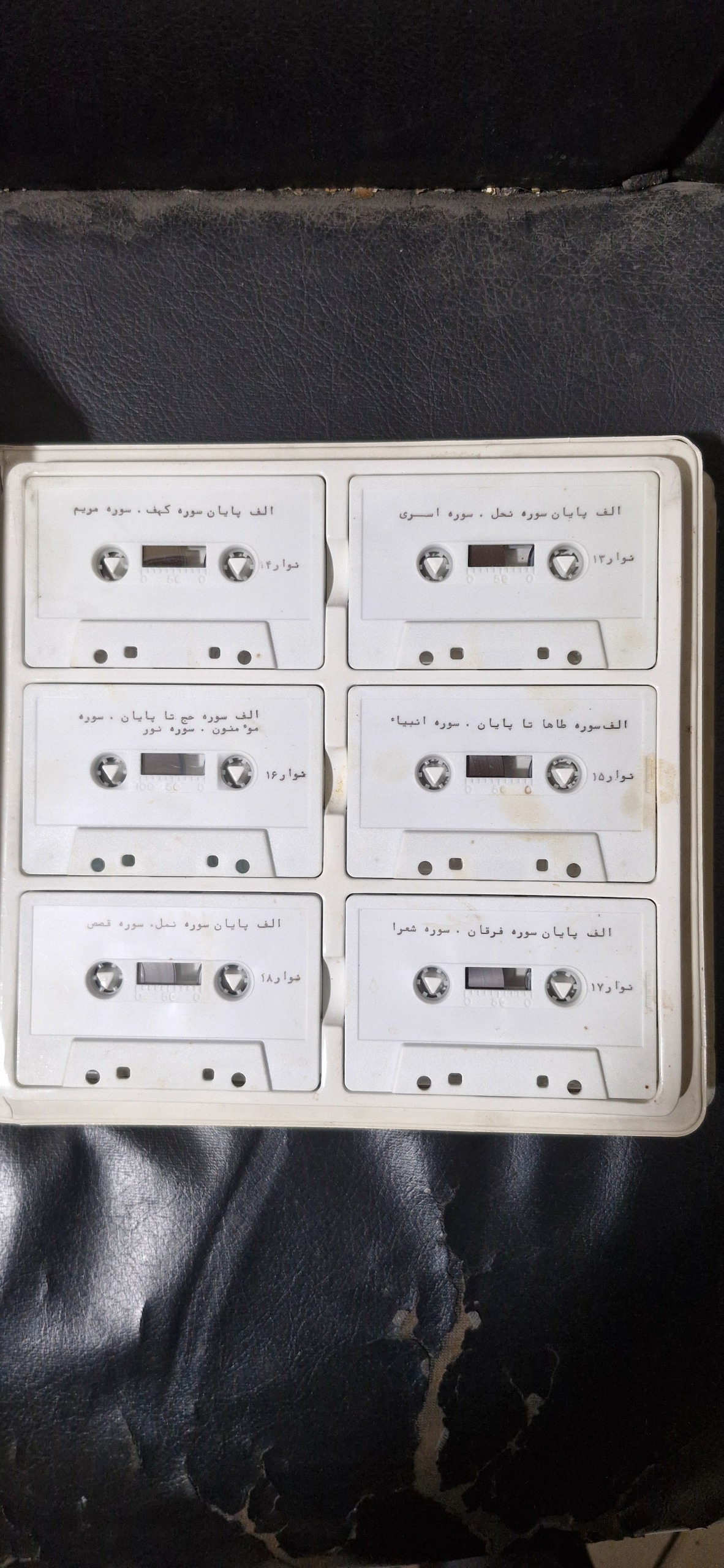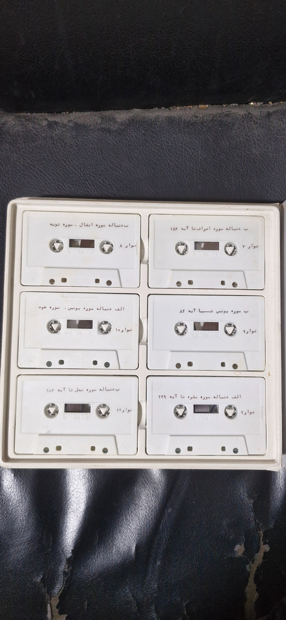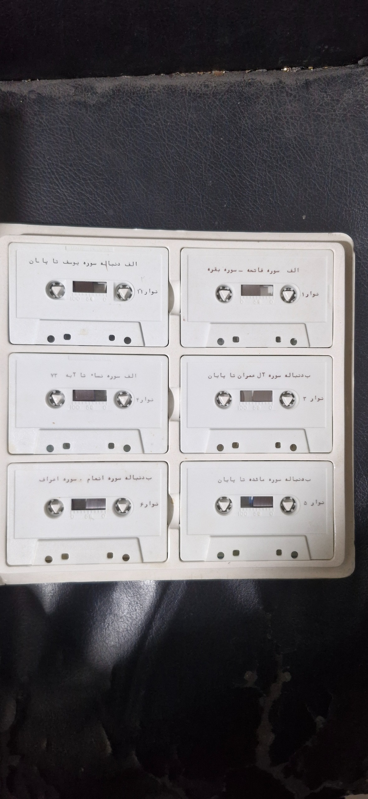 نوار کاست 24عددی قرآن کریم ساخت آمریکا با کیف مخصوص تولید 1988 اولین نوار کاست ترجمه فارسی به ترجمه الهی قمشه ای و گوینده انوشیروان کنگرلو و تهیه کننده انصاری و طرح جلد اویسی