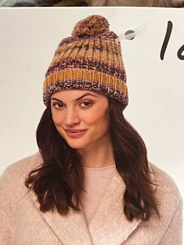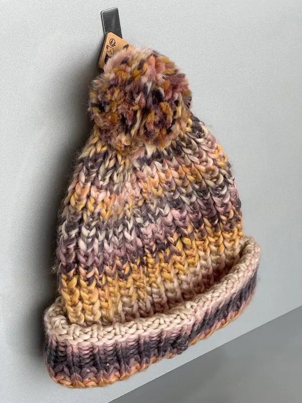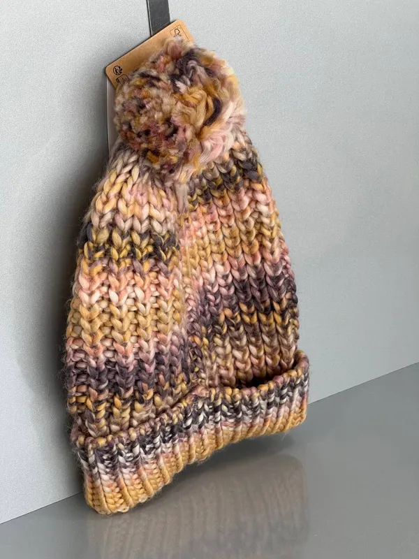 کلاه زمستانی پومدار با بافت رنگارنگ