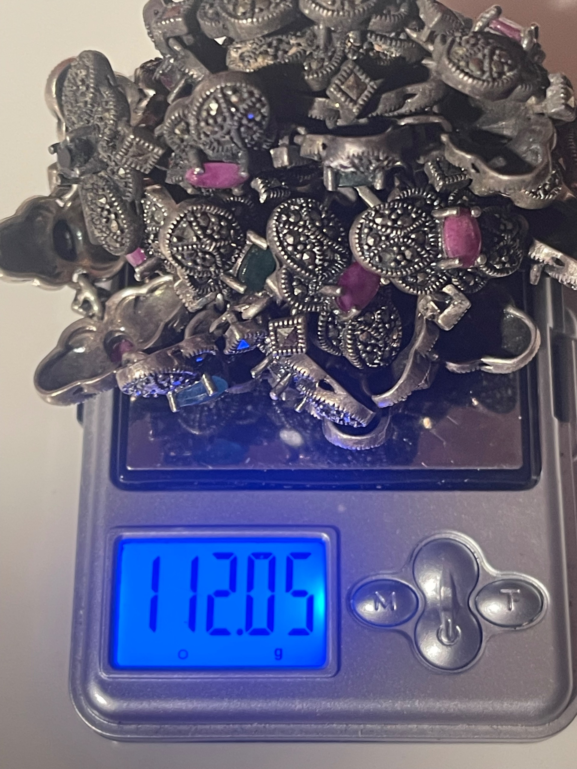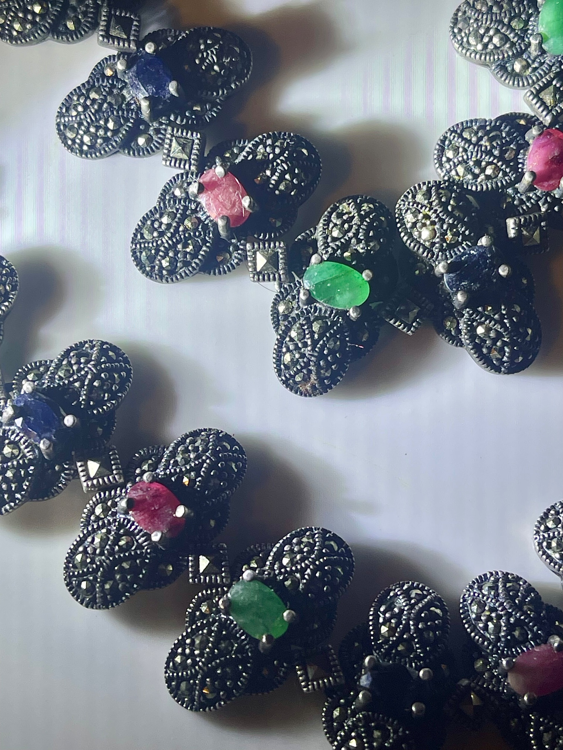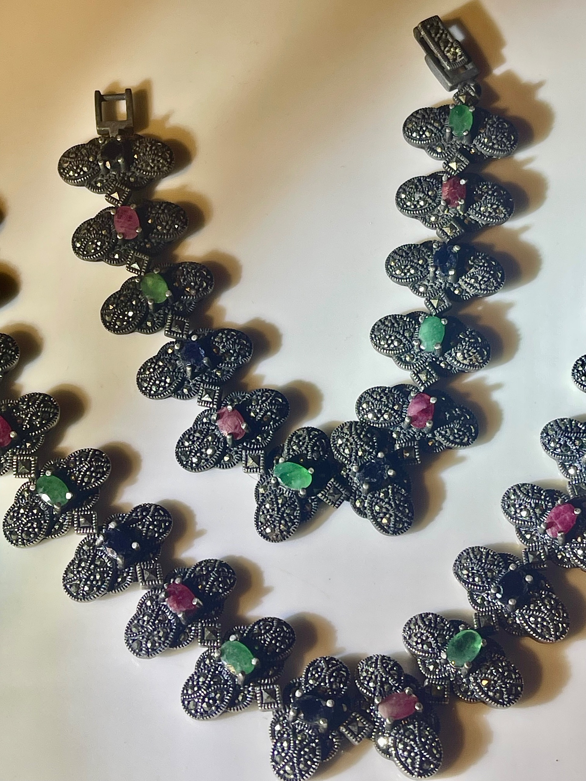 گردنبند و دستبند ست نقره زمرد یاقوت110 گرم
