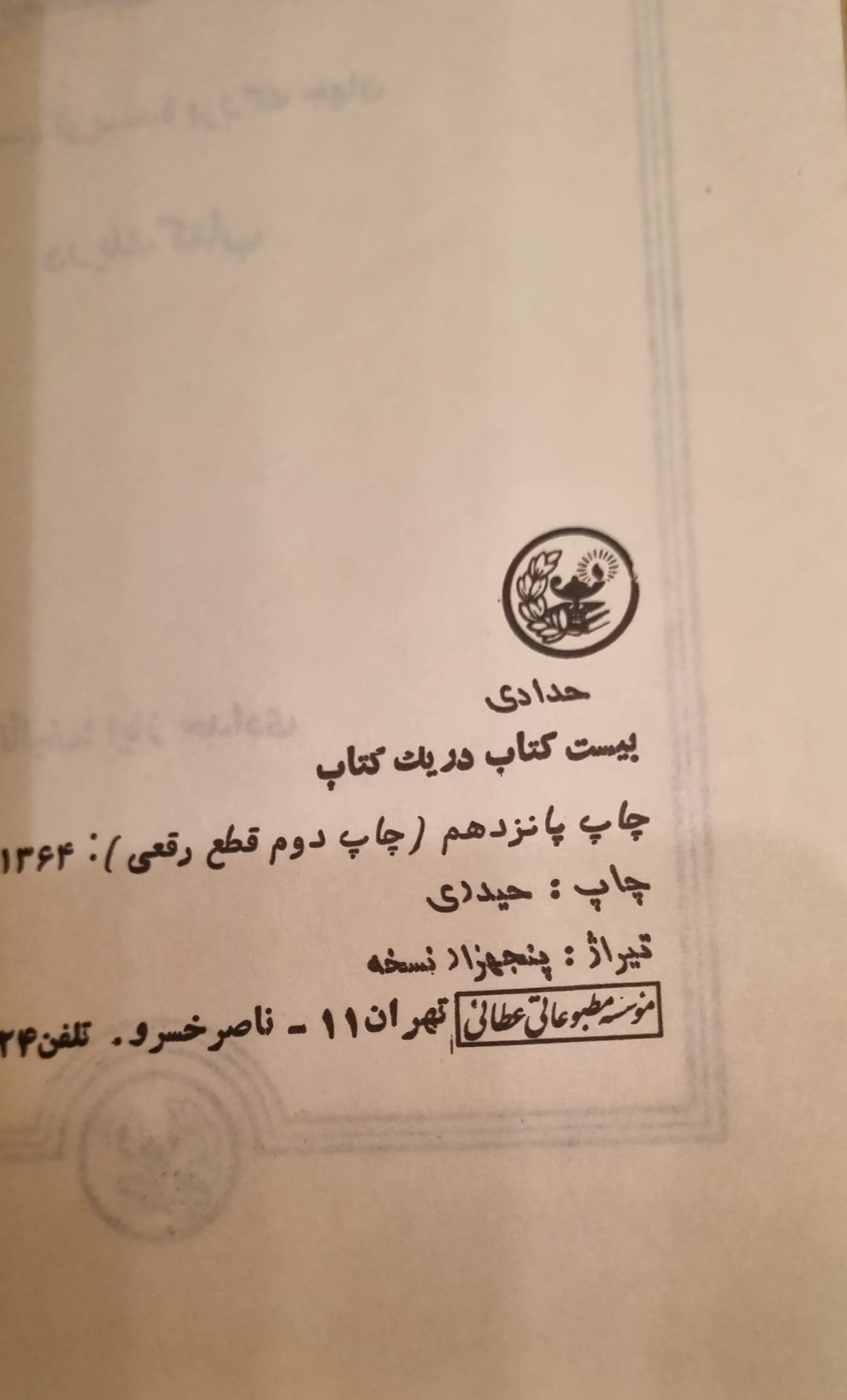 بعلت قدیمی بودن خطهایی جزیی روی جلد کتاب ممکن است باشد اما داخل و صفحات ، سالم و تمیز هستند .