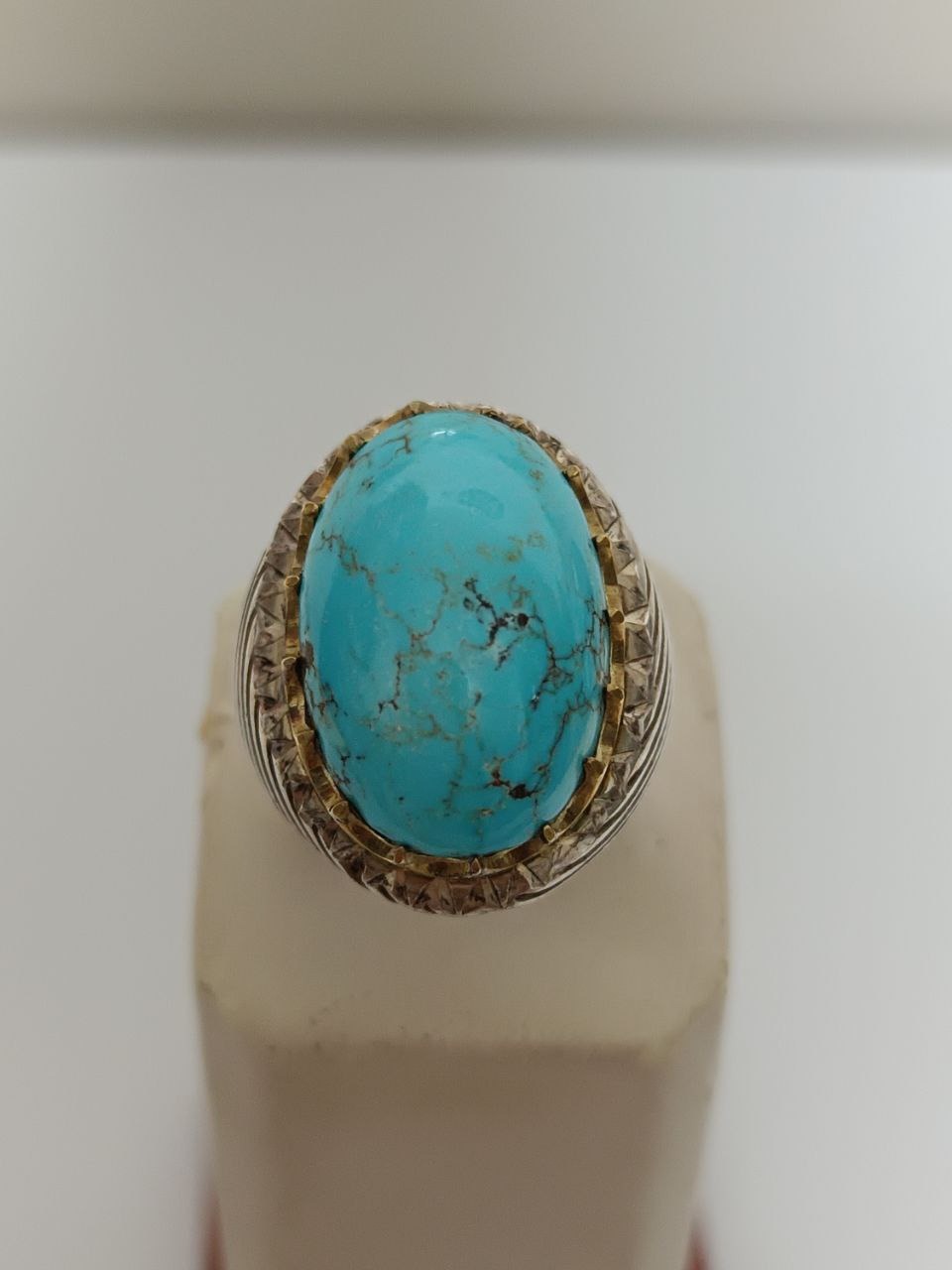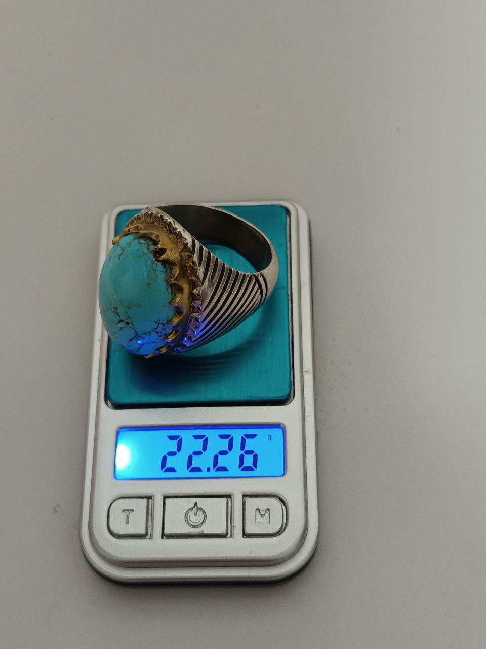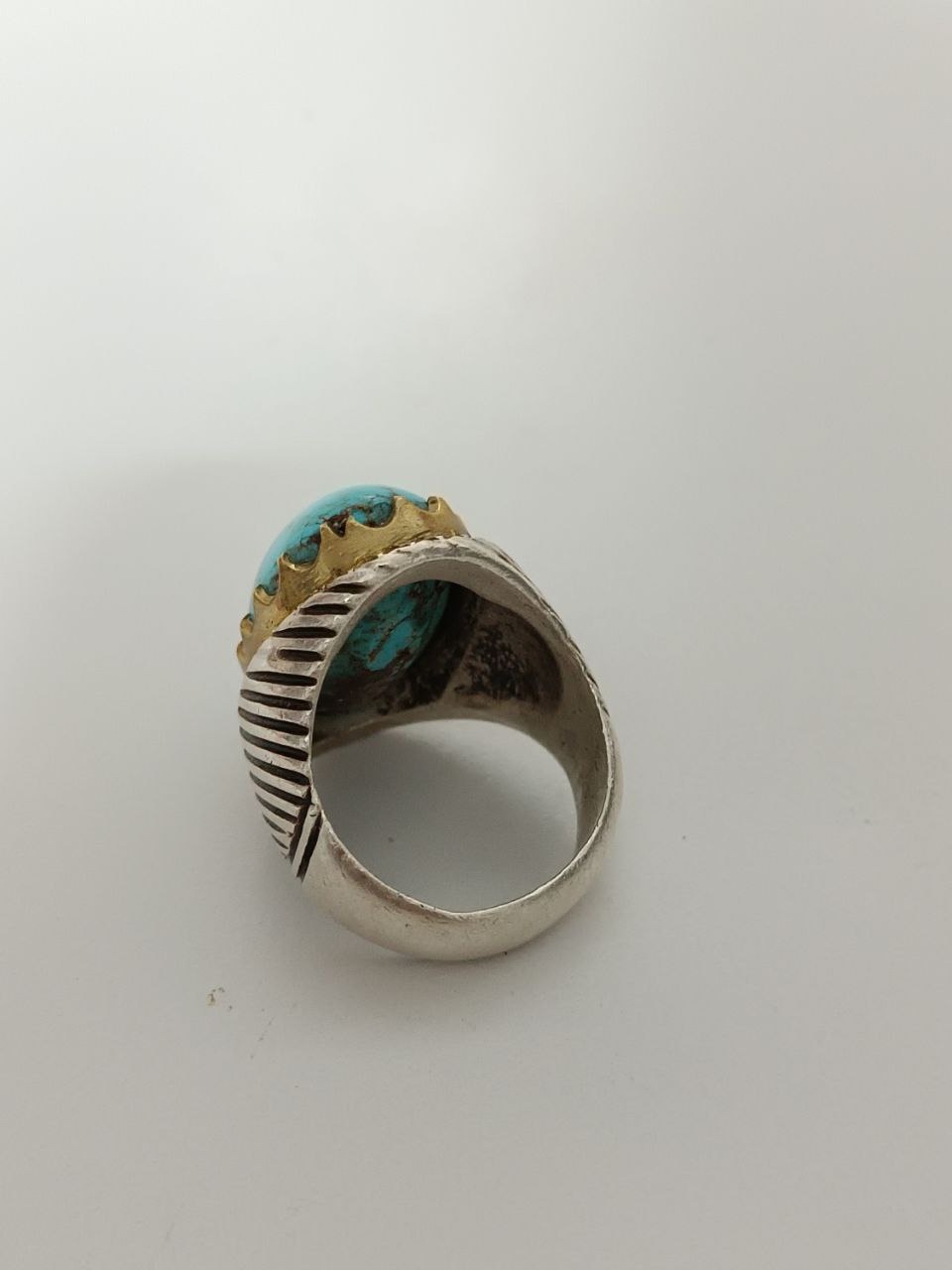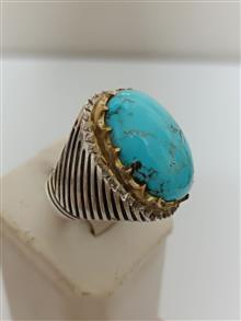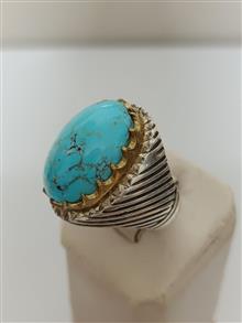 انگشتر نقره  فیروزه درشت تمام مغز آبی نیشابور