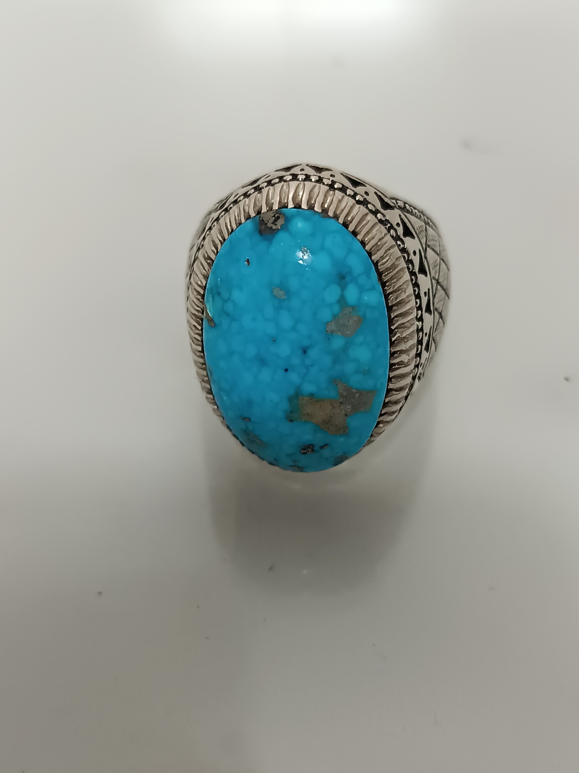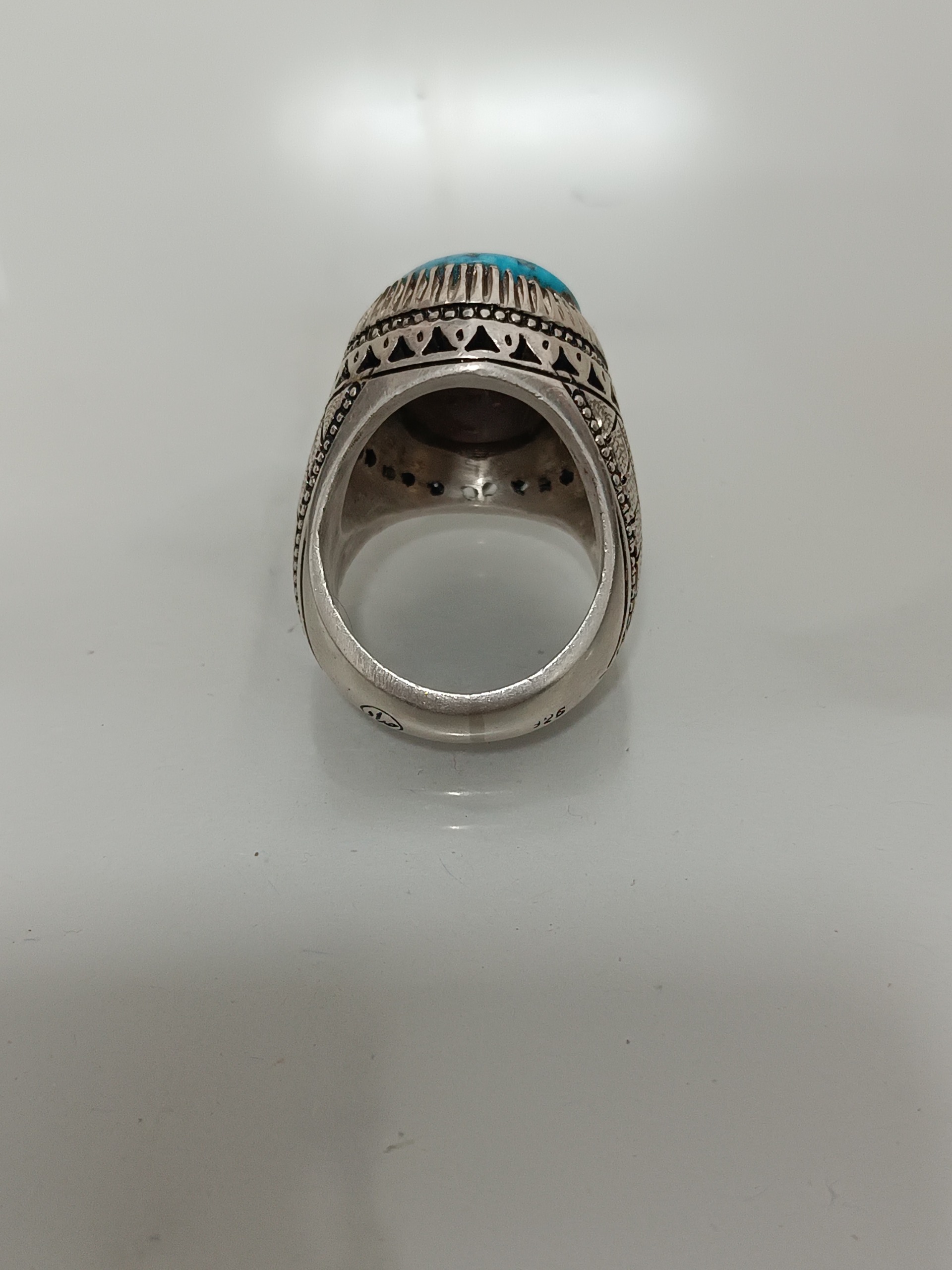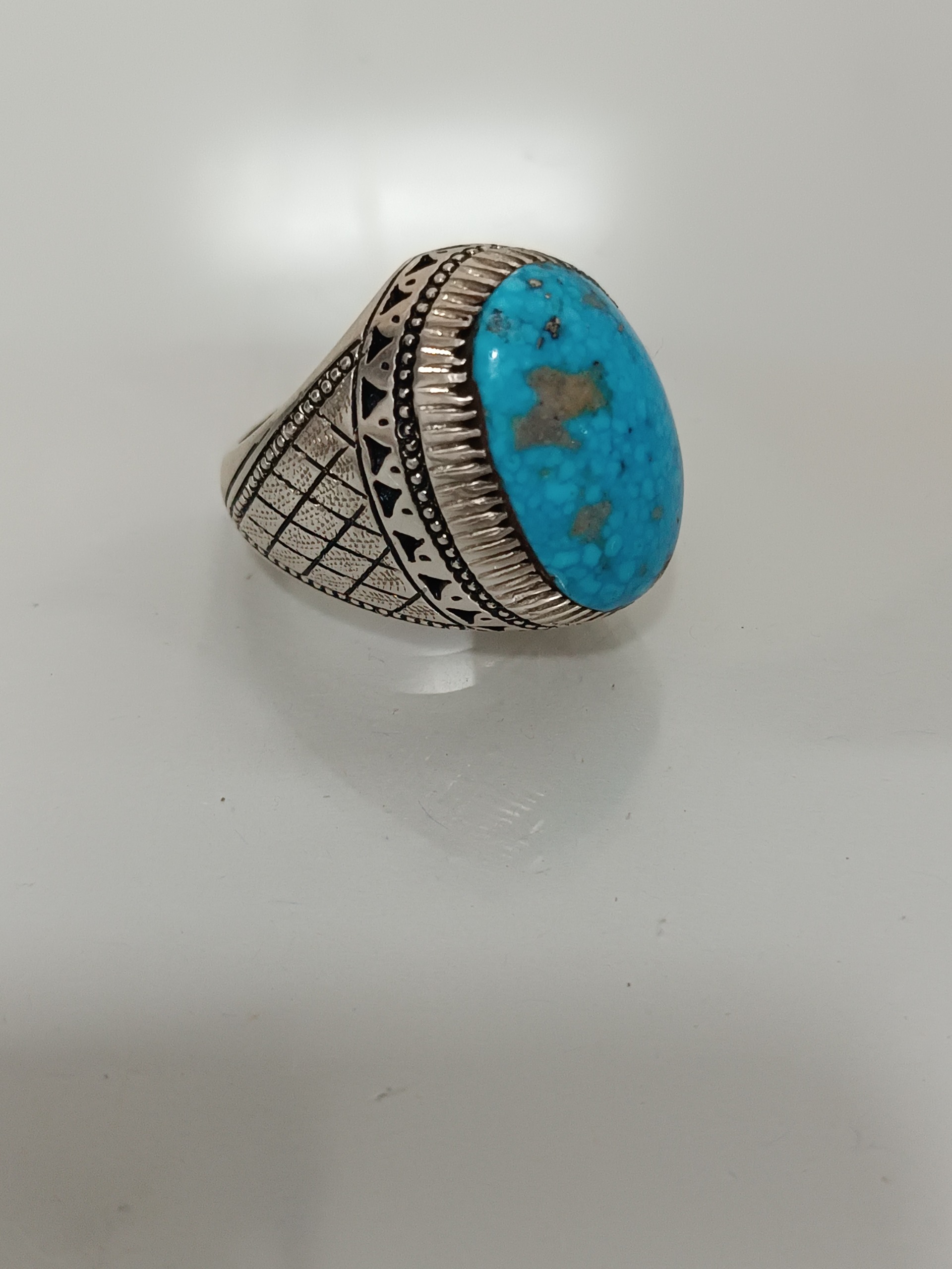 انگشتر نقره 925 مغز سنگ فیروزه نیشابور وزن 43 گرم