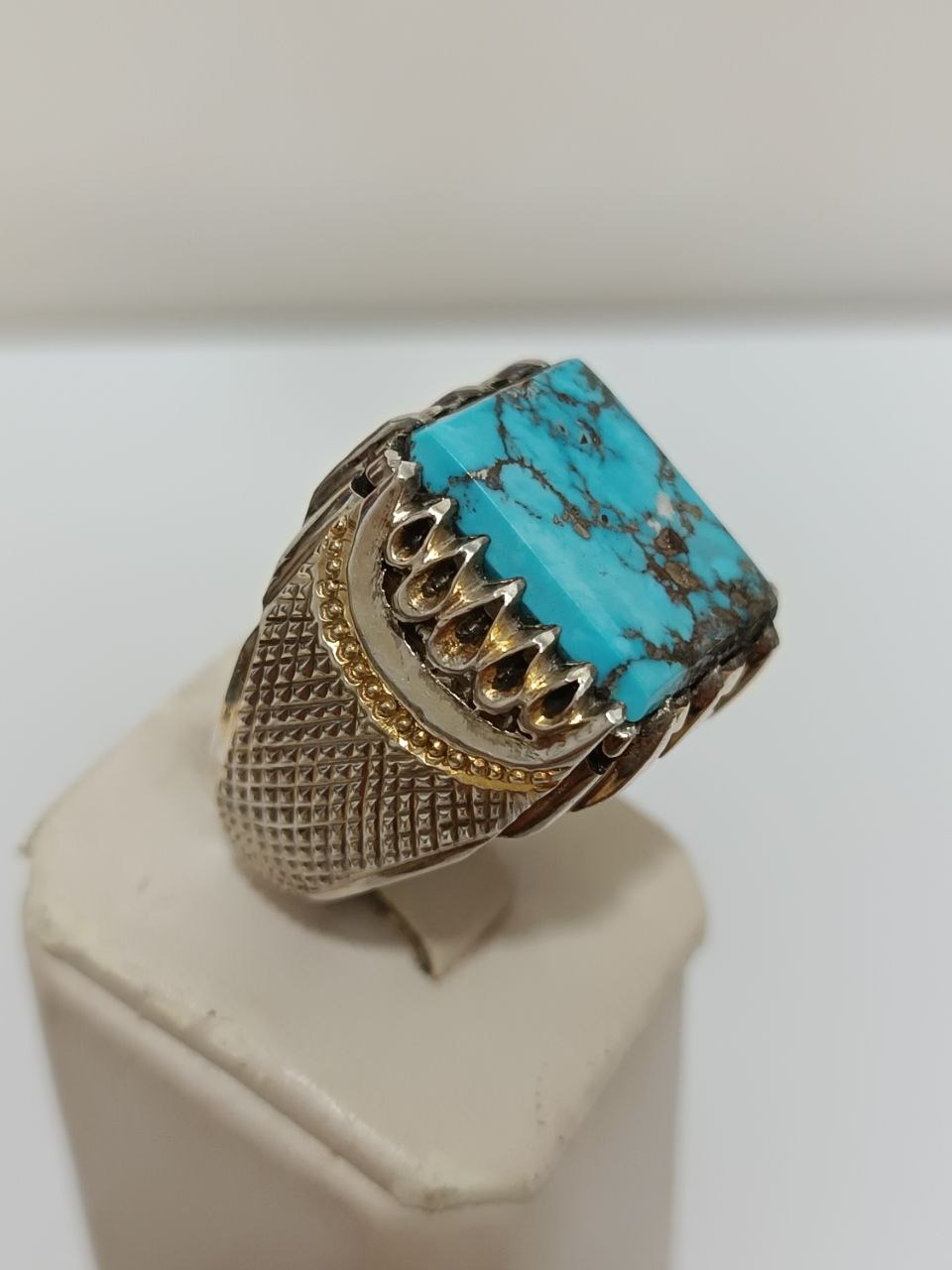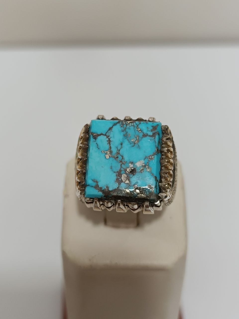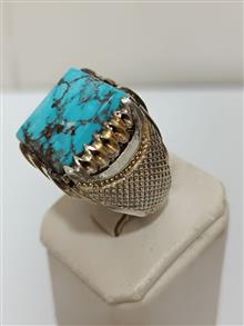 انگشتر فیروزه چهار گوش خوش رنگ نیشابور