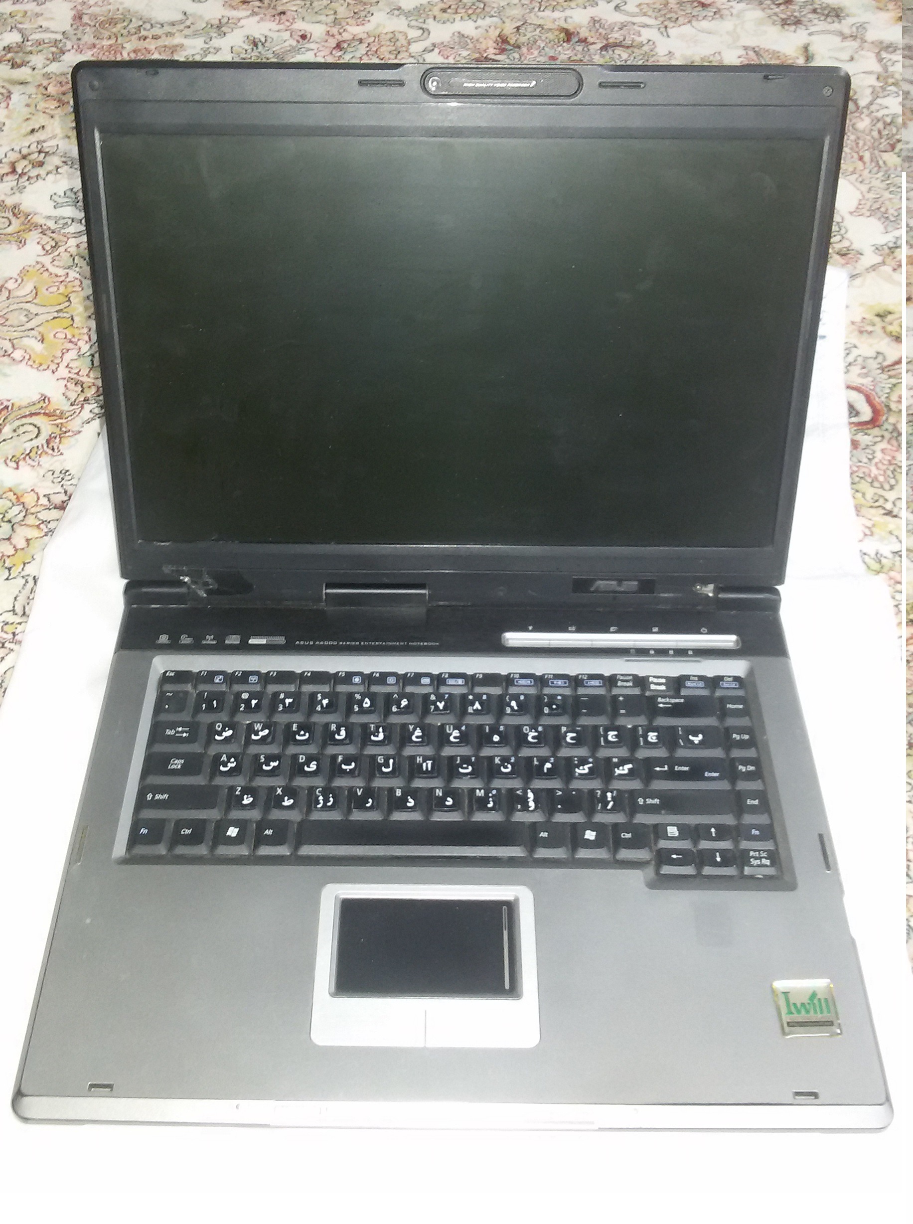 در حال کار بودم که خاموش شد هاردشو چون اطلاعات شخصی داشتم برداشته ام پشت قاب مانیتور چسب زده شده چون درزش باز شده بود قاب باتری دارد ولی باتری داخلش نیست رم دارد (طبق تصاویر) DVD رایتر دارد.