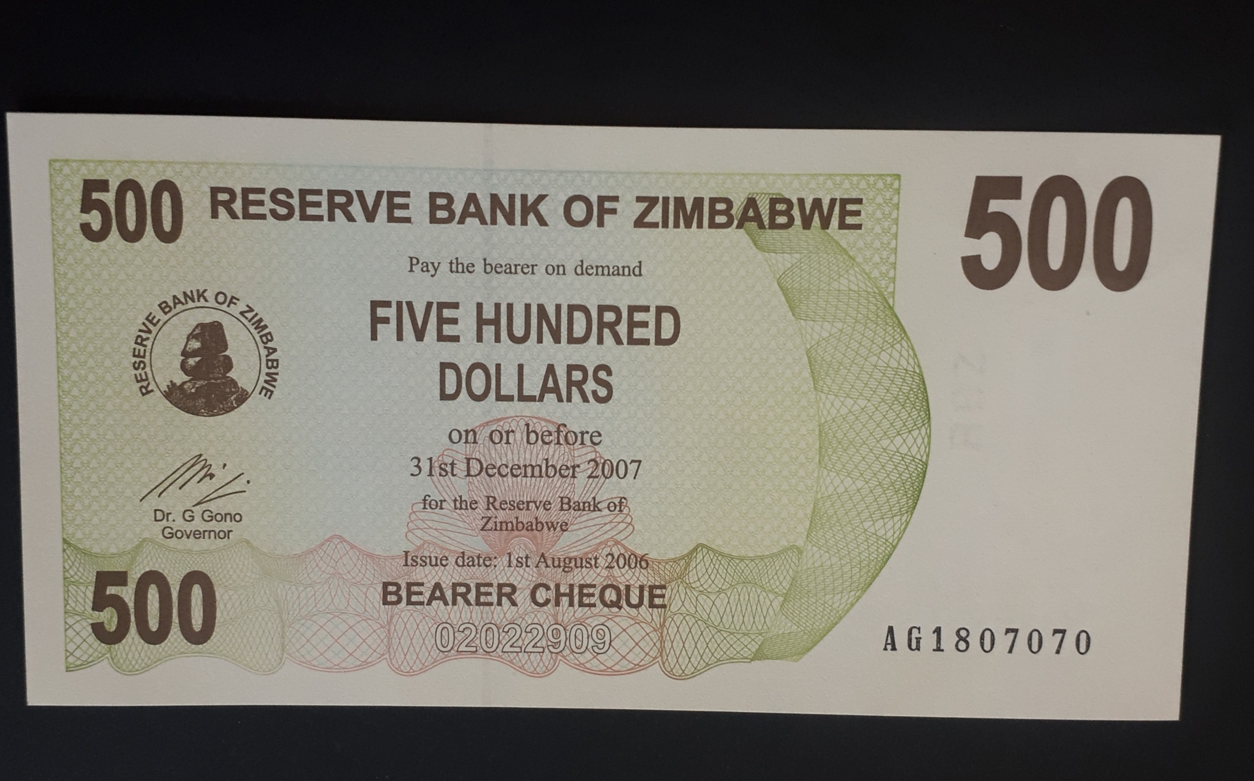اسکناس تک 500 دلار زیمباوه زیمبابوه