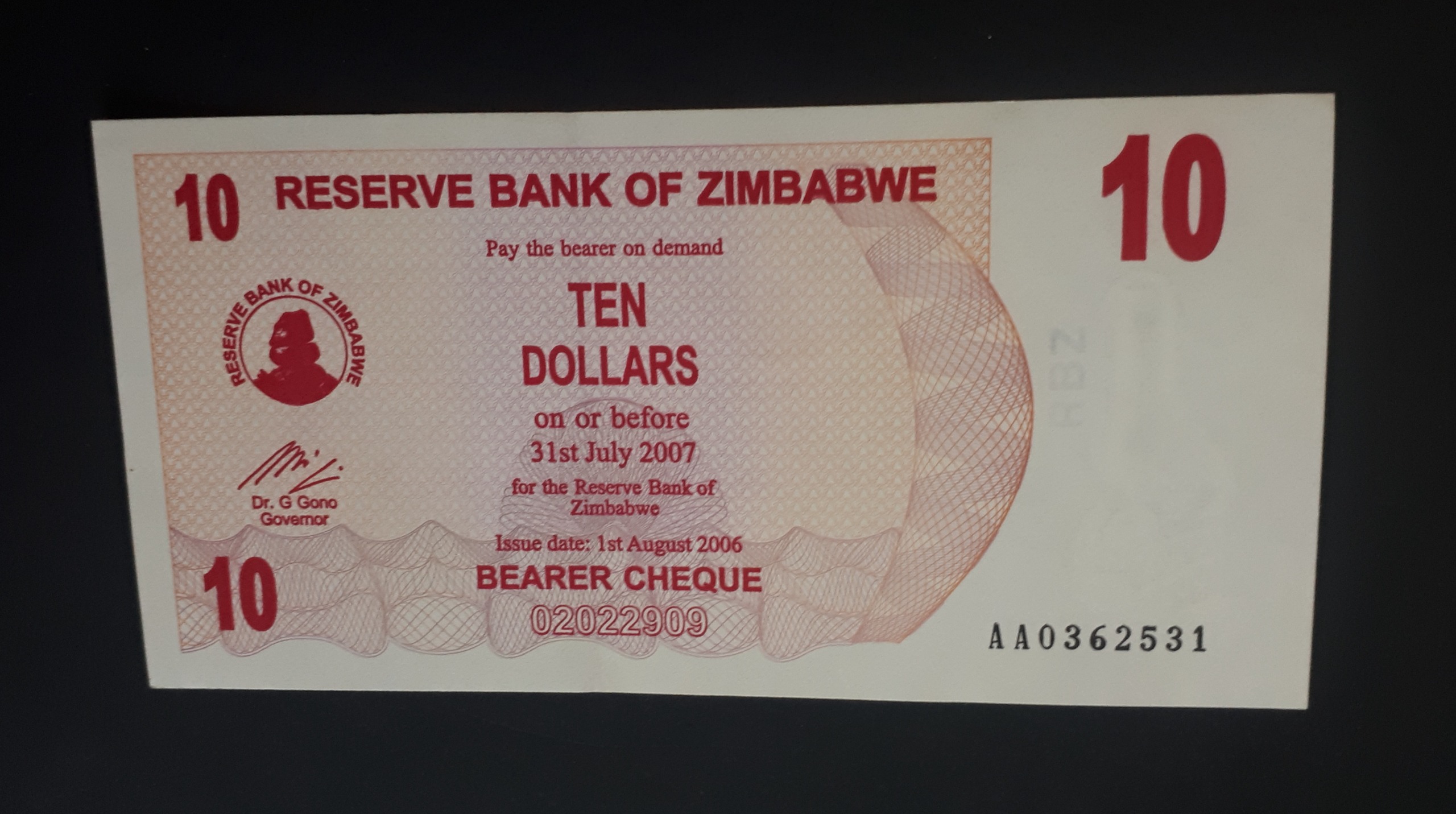 اسکناس تک 10 دلار زیمباوه زیمبابوه