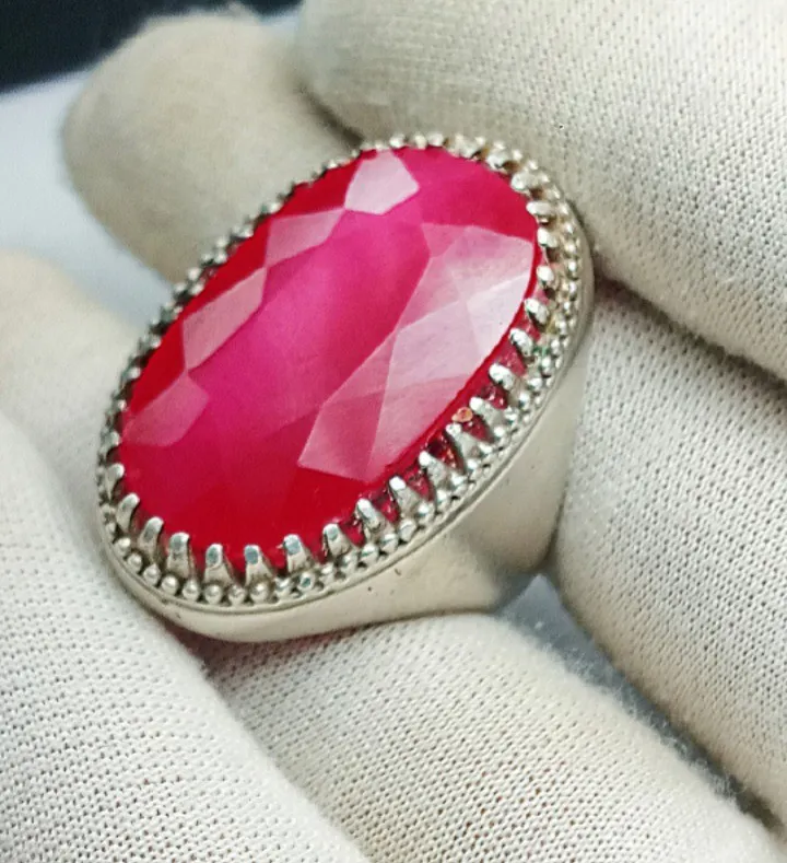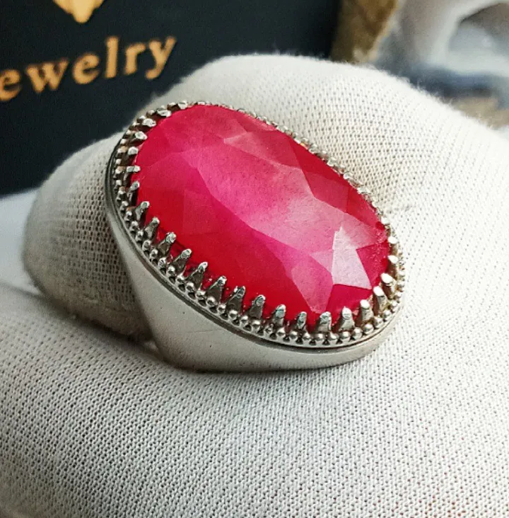 انگشتر شیک و زیبای یاقوت سرخ پاریس خوشرنگ درشت و خوشدست رکاب نقره عیار 925 خاص و زیبا
