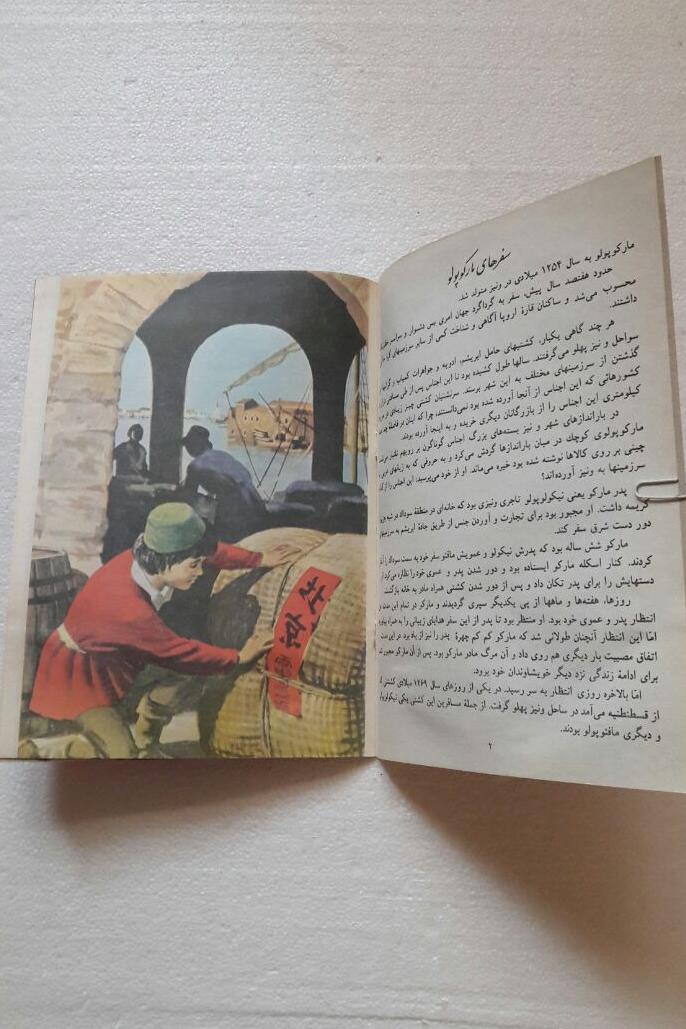 کتاب سفرهای مارکوپولو 1385بدون کسری است ولی از حاشیه پایین آبخوردگی دارد که در عکس تا حدودی قابل مشاهده است.مواردی لک جزئی.با قطع رحلی(آ4) 24صفحه می باشد.ممکن است اختلافات جزئی بین دو نسخه موجود که برای فروش گذاشته شده،وجود داشته باشد.در صورت عدم مطابقت با انتظاراتتان از خرید خودداری نمایید.