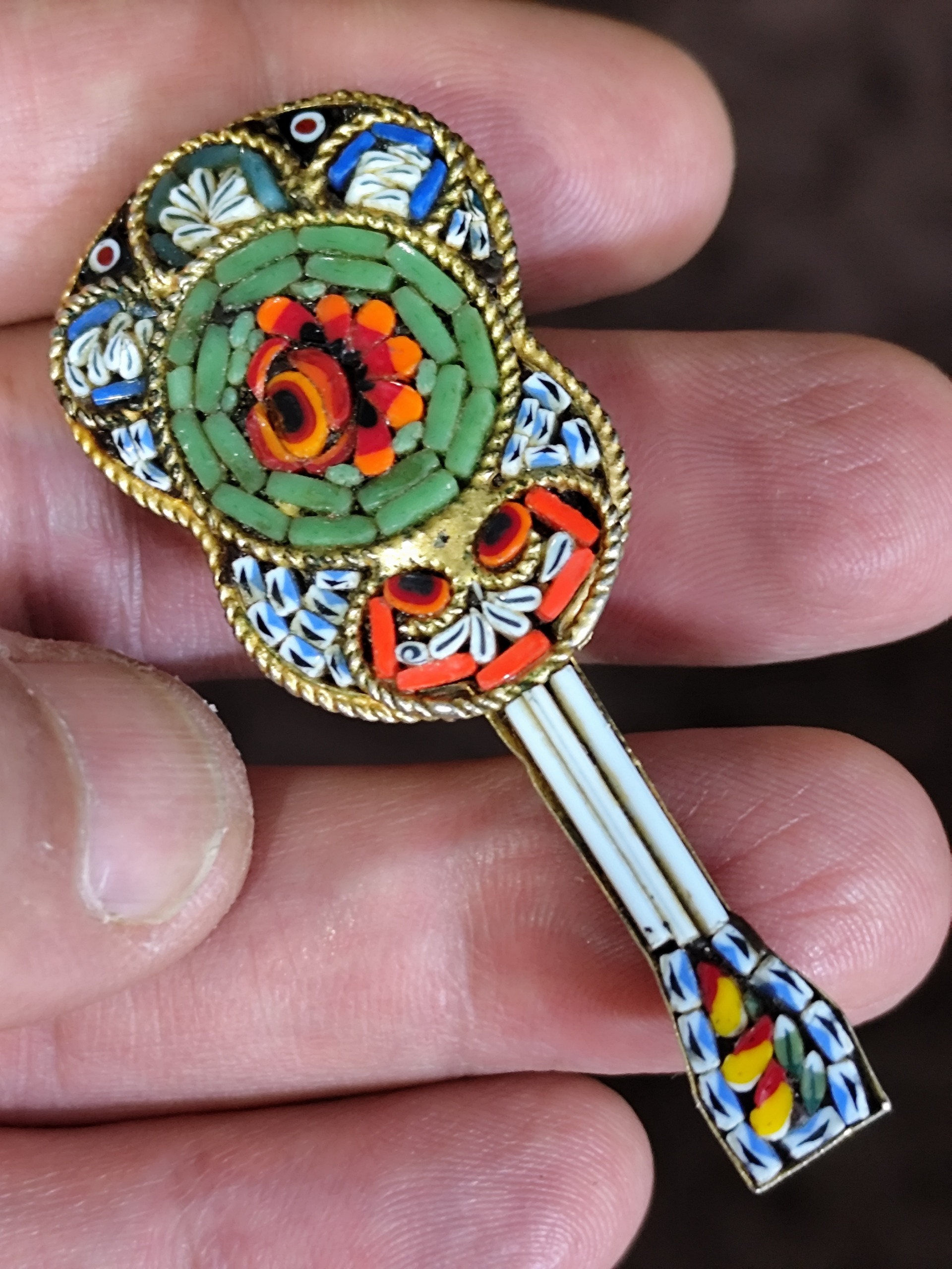 سنجاق سینه ایتالیایی عتیقه میناکاری دستساز