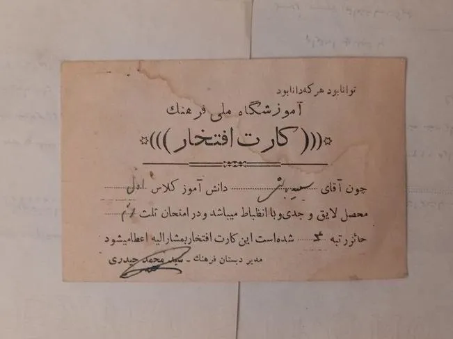 کارت افتخار آموزشگاه ملی فرهنگ
