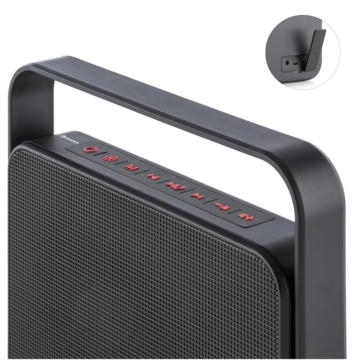 auna Dazzl 5.0 بلندگوی بلوتوث طراحی رادیو قابل حمل بلوتوث 4.0 پورت USB AUX جلوه نور LED قابلیت هندزفری باتری زمان کارکرد: تا 10 ساعت دسته تاشو ویژگی خاص : ورودی AUX برای اتصال دستگاههای صوتی خارجی مانند پخشکنندههای MP3 یا CD و رایانه، بلندگوی مهمانی قابل حمل با رابط بلوتوث و جلوه نور LED چند رنگ، باتری قدرتمند 4000 میلیآمپر ساعت برای ساعتها لذت بردن از موسیقی، عملکرد هندزفری کاربردی به لطف میکروفون داخلی، طراحی شیک و زیبا با دسته تاشو برای حملورودی AUX برای اتصال دستگاههای صوتی خارجی مانند پخشکنندههای MP3 یا CD و رایانه، بلندگوی مهمانی قابل حمل با رابط بلوتوث و صدا و نور برای حرکت: دستگاه پخش موسیقی auna Dazzl 5.0 هر مکانی را به مکانی برای مهمانی تبدیل میکند. نکته برجسته، LEDهای رنگارنگ چند رنگ است که با لمس یک دکمه، نمایش نوری متنوعی را ارائه میدهند و هر آهنگ را به یک تجربه صوتی-تصویری تبدیل میکنند. قدرت فوقالعاده در مهمانی: باتری قدرتمند لیتیوم-یونی 4000 میلیآمپر ساعتی auna Dazzl 5.0 ساعتها سرگرمی در مهمانی را فراهم میکند، تا 10 ساعت که مد روز است و به راحتی از طریق کابل USB موجود در هر لپتاپ یا کامپیوتری قابل شارژ است. بیسیم و انعطافپذیر: رابط بلوتوث 4.0 تبادل اطلاعات موسیقی با دستگاههای دارای بلوتوث، چه تلفن هوشمند، تبلت یا لپتاپ، را آسان میکند. دستگاههای متصل را میتوان از طریق Dazzl 5.0 نیز کنترل کرد. همهکاره و کاربردی: دستگاههای صوتی سیمی خارجی، مانند لپتاپ، پخشکنندههای MP3 و CD و همچنین تلفنهای همراه، میتوانند به راحتی از طریق ورودی آنالوگ USB AUX به سیستم صوتی متصل شوند. عملکرد هندزفری هوشمند: یک میکروفون یکپارچه در ترکیب با اتصال بلوتوث به تلفن هوشمند یا تلفن همراه شما، جعبه را به یک سیستم هندزفری تبدیل میکند. این به شما امکان میدهد بدون در دست داشتن گوشی، تماس برقرار کنید. بلندگوی بلوتوث فوق العاده قابل حمل با باتری داخلی و نورپردازی LED چند رنگ. هندزفری - به لطف میکروفون داخلی، عملکرد هندزفری کاربردی است. کیف طراحی شیک با پایه حمل تاشو. دستگاه جشن قابل حمل برای هر مکانی! Dazzl 5.0 از برند auna حال و هوای مهمانی را به هر مکانی، چه در خانه و چه در حال حرکت، میآورد. نکته برجسته ویژه، LED های رنگارنگ چند رنگ هستند که با لمس یک دکمه، نمایش نوری متنوعی را ارائه میدهند و هر آهنگ را به یک تجربه صوتی-تصویری تبدیل میکنند. از بین حالتهای مختلف LED از پیش برنامهریزی شده، یکی را انتخاب کنید تا آهنگهای مورد علاقهتان در کانون توجه قرار گیرند. رابطها: 1 پورت میکرو USB، 1 ورودی AUX جک 3.5 میلیمتری. نسخه بلوتوث: 4.0. پروفایلهای بلوتوث: A2DP، AVRCP برد بلوتوث: 10 متر. زمان کارکرد: تا 10 ساعت. حالتهای LED: storm، spot fade، spot، swing، flow، stack، swipe بخش کنترل بالای سر با دکمههای لمسی نرم. نمایش صدا از طریق LEDها. استفاده آسان. باتری داخلی 3.7 ولت - 4000 میلیآمپر ساعت. منبع تغذیه: DC 5 ولت، 1 آمپر از طریق USB (منبع تغذیه شامل نمیشود).