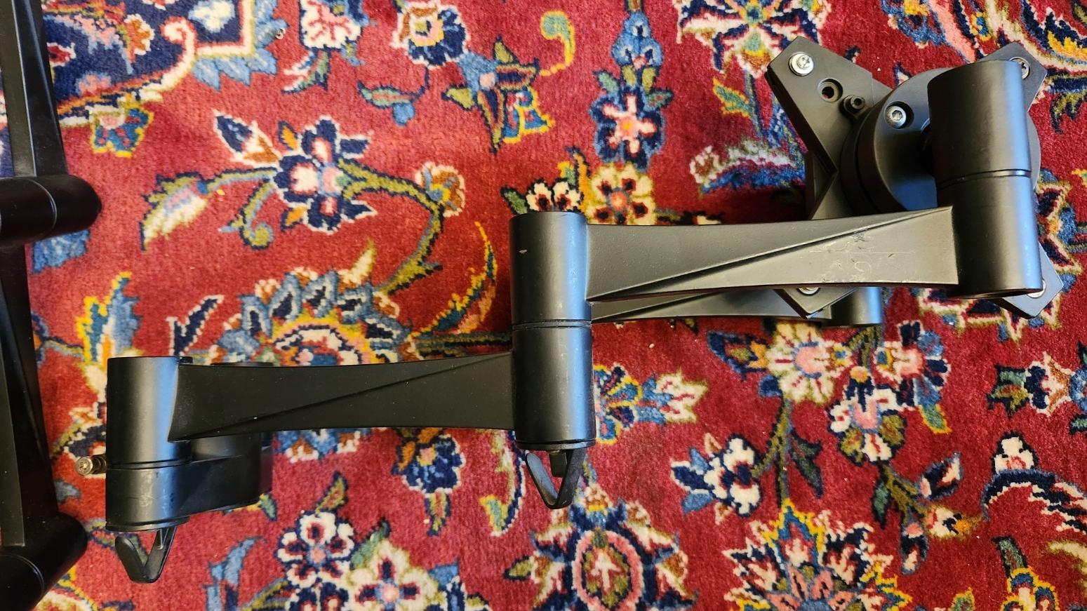 در هر بازو 3 تا زاویه چرخش محور افقی وجود دارد و یک هلدر مانیتور که ان نیز می چرخد