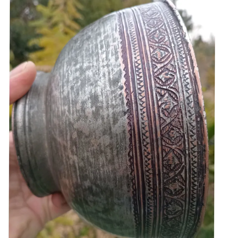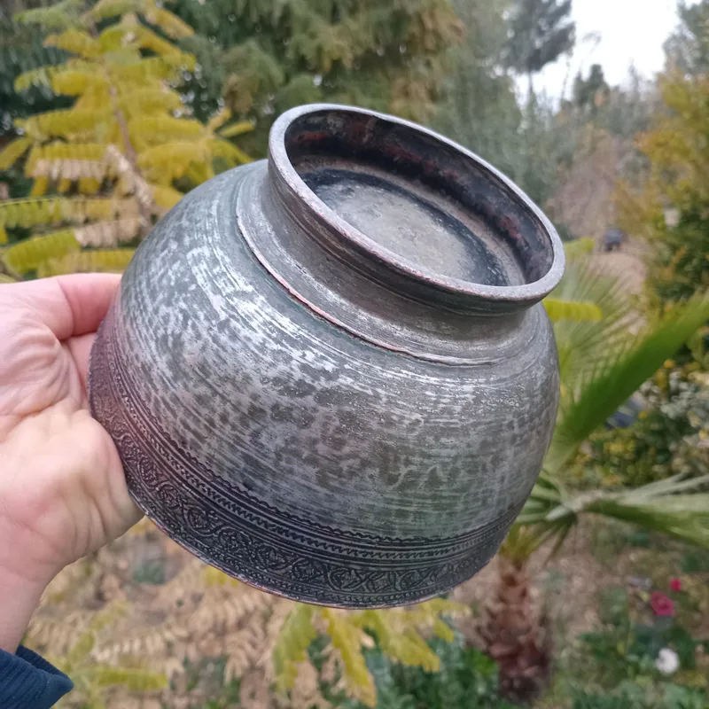کاسه کعبدار مسی چکشی قلم و قدمت اوایل قاجار