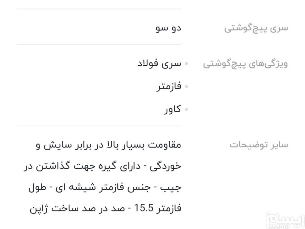 مشخصات کالا