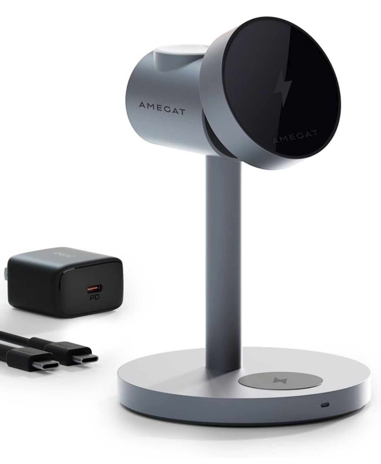 طراحی شیک 3 در 1: پایه شارژر بیسیم AMEGAT که برای آیفون، اپل واچ و ایرپاد شما طراحی شده است، این راهکار شارژ یک مرحلهای، نیاز به شارژرهای متعدد و کابلهای نامرتب را از بین میبرد و زیبایی و سادگی را به فضای شما میآورد.