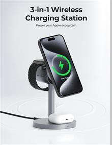 ایستگاه شارژ سه کاره MagFusion سازگار با MagSafe، پایه شارژر بیسیم مغناطیسی 15 واتی دارای گواهینامه Qi2، برای سری آیفون 17/16/15/14/13/12، اپل واچ، ایرپاد (شارژر 30 واتی PD شامل میشود)