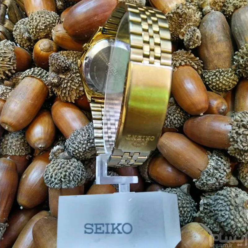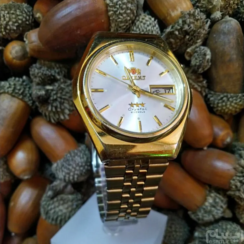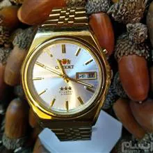 اورینت سه ستاره اورجینال ، رنگ طلایی ، ضد آب ، اتوماتیک ، تقویم فارسی و انگلیسی پمپی ، کاملا فابریک ، جنس بدنه و بند استیل ضد حساسیت ، بسیار تمیز و بی عیب و ایراد ، کارکرد دقیق ، بسیار زیبا.
