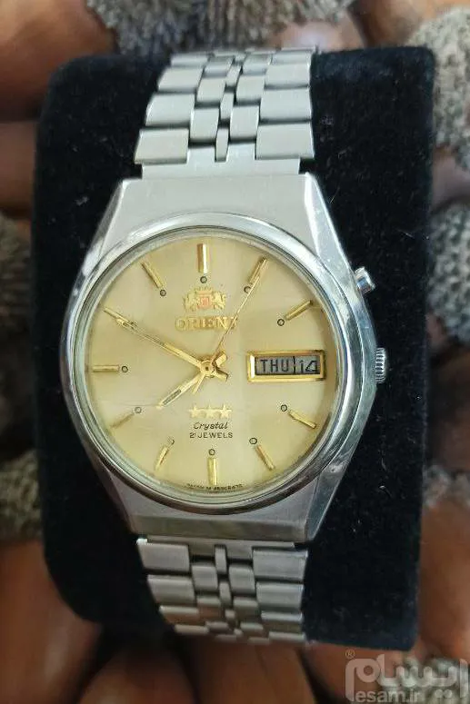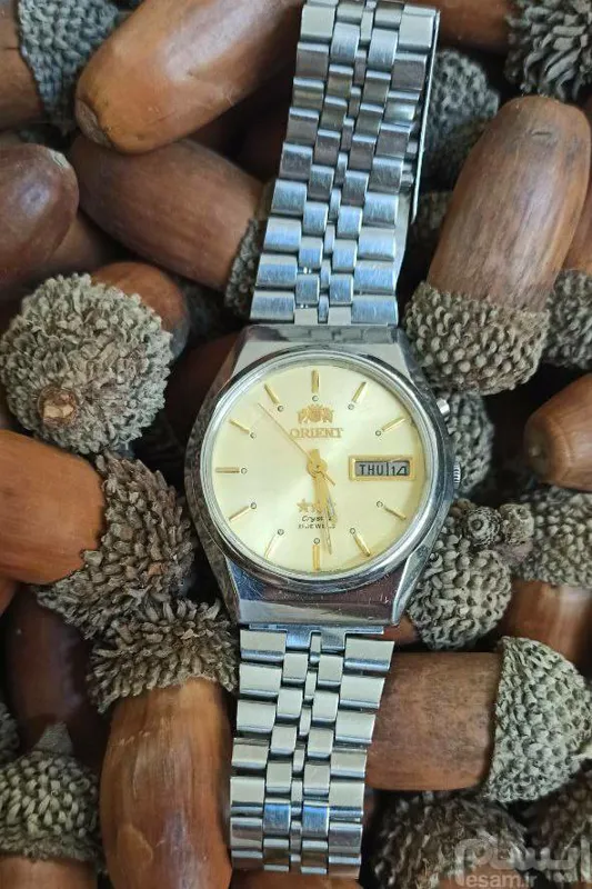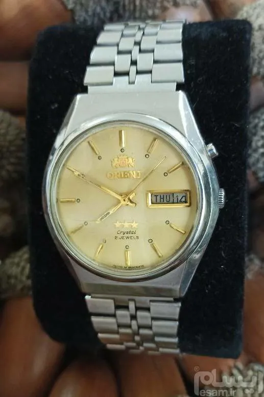 ساعت مچی مردانه اورینت 3 ستاره 2 شیر نشان که تماما فابریک میباشد از جمله شیشه ، دسته کوک ، بند ساعت و... ضد آب ، فول استیل رنگ ثابت ضد حساسیت ، تقویم ، صفحه بدون کوچکترین خط و خش ولی شیشه خط و خش داره و شیشه فابریک تراش خورده و شکل دار و ذره بینی است ، موتور ساعت بکر و زنده کار میکنه و البته دقیق ، مختص کلکسیون بسیار تمیز و شیک