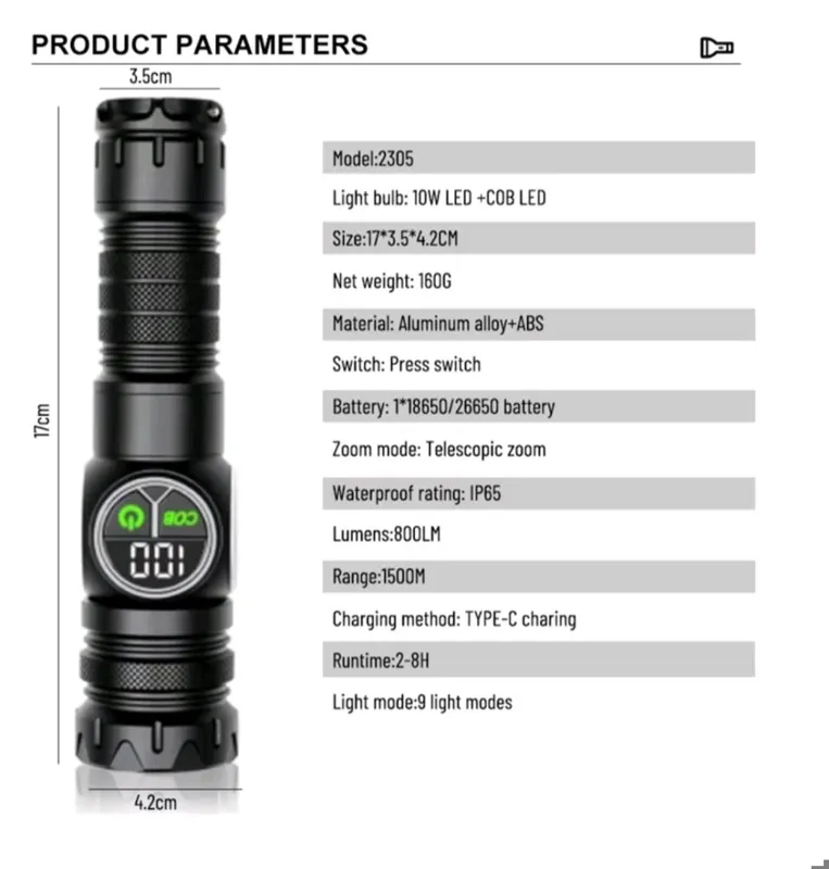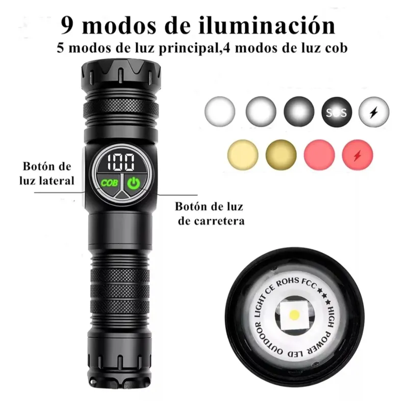 چراغ قوه اصلی برند معروف کینگ تعداد محدود توضیحات میدانی و مختصر قدرت نورش که عالی دارای نمایشگر شارژ دارای باتری 2600 میلی آمپر شارژی، چند حالت نور ده ای کم زیاد چشمک زن ته چراغ قوه آهن ربایی دارای چراغ مهتابی در کنار و چراغ قرمز بدنه فلزی دارای زوم معرفی چراغ قوه حرفهای آیا به دنبال یک چراغ قوه قوی و کارآمد هستید که بتواند در شرایط مختلف به شما کمک کند؟ چراغ قوه حرفهای ما با ویژگیهای منحصر به فرد و طراحی مستحکم، گزینهای ایدهآل برای شماست. این چراغ قوه با نوری قوی و قابلیتهای متنوع، به شما این امکان را میدهد که در هر شرایطی روشنایی لازم را داشته باشید، دارای 4 حالت نوردهی در جلو _ دارای نور بغل COB نور و زرد و قرمز... _ دارای آهن ربا در انتها_ دارای نمایشگر دیجیتالی میزان شارژ _ دارای بزررگنمایی و زوم تلسکوپی قوی _ دارای سری محکم جهت شکستن شیشه در مواقع ضروری_ دارای برد نور بالای 1000 متر_ دارای یو اس بی جهت شارژ موبایل در مواقع ضروری.