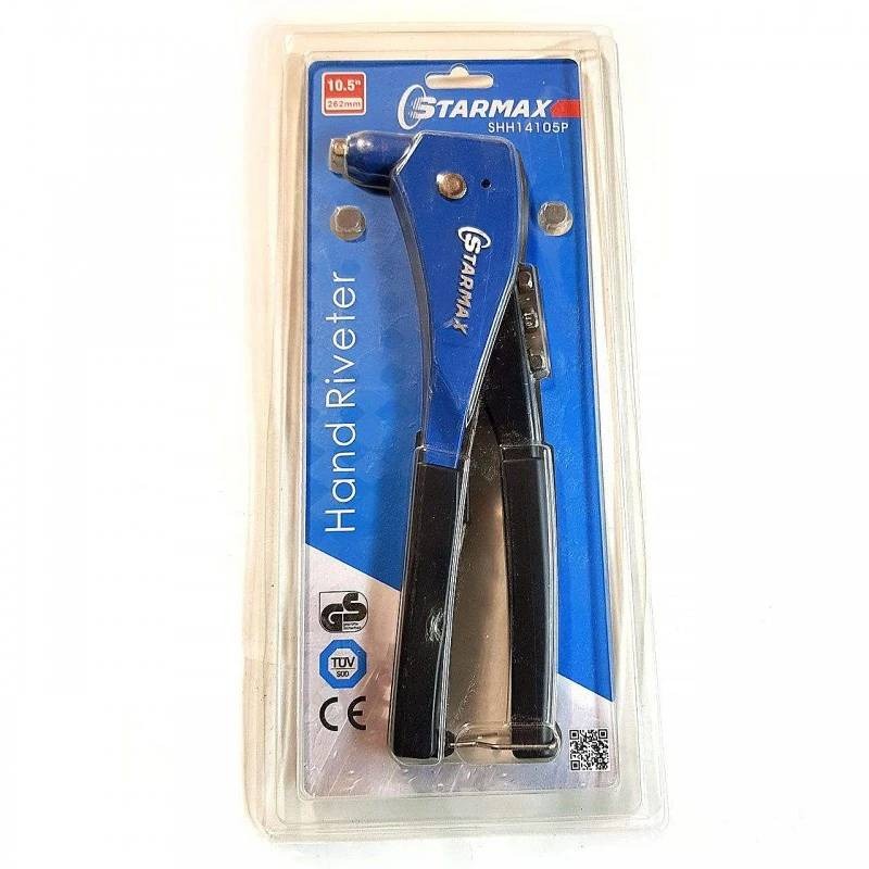 انبر پرچ استار مکس مدل SHK-14105P محصولی با کیفیت از برند مطرح استارمکس میباشد که میتواند نیاز شما را به خوبی برطرف کند. از ویژگی های جذاب این محصول میتوان به بدنه ی با کیفیتِ از جنس فولاد (Hot Froged) آن اشاره کرد. از ویژگی های کلیدی دیگر مدل SHK-14105P توانایی پرچ آن است که میتواند انواع میخ از جنس استیل و الومینیوم را پرچ کند. دیگر ویژگی این محصول توانایی منحصر به فرد آن در جهت انجام سریع و با کیفیت انواع میخ پرچ است . استارمکس با داشتن فک های سخت کاری شده ی از جنس آلیاژ CRMO کیفیت ساخت خود را بار دیگر تضمین میکند. انبر پرچ برند استار مکس با طرح پیکاس امکان پرچ کاری میخ پرچ های در سایز 2/4 و 3/2 و 4 و 4/8 را دارد.