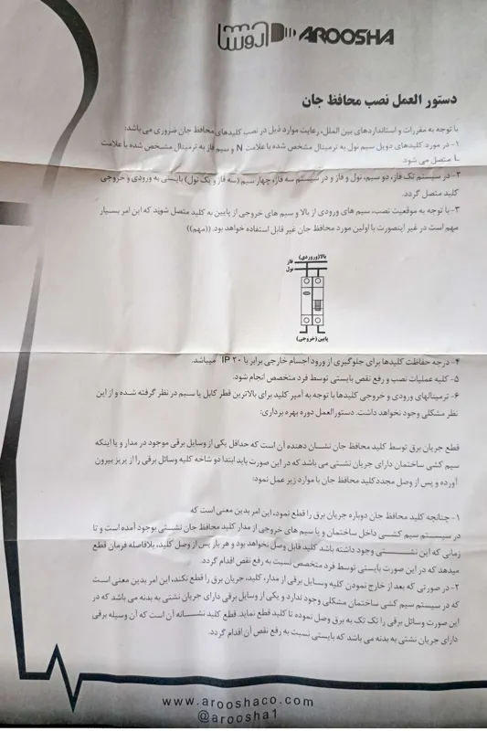 فیوز/کلید محافظ جان آروشا تکفاز 32 آمپر مدل RN11-2 دارای گارانتی AROOSHA مطابق تصاویر و توضیحات