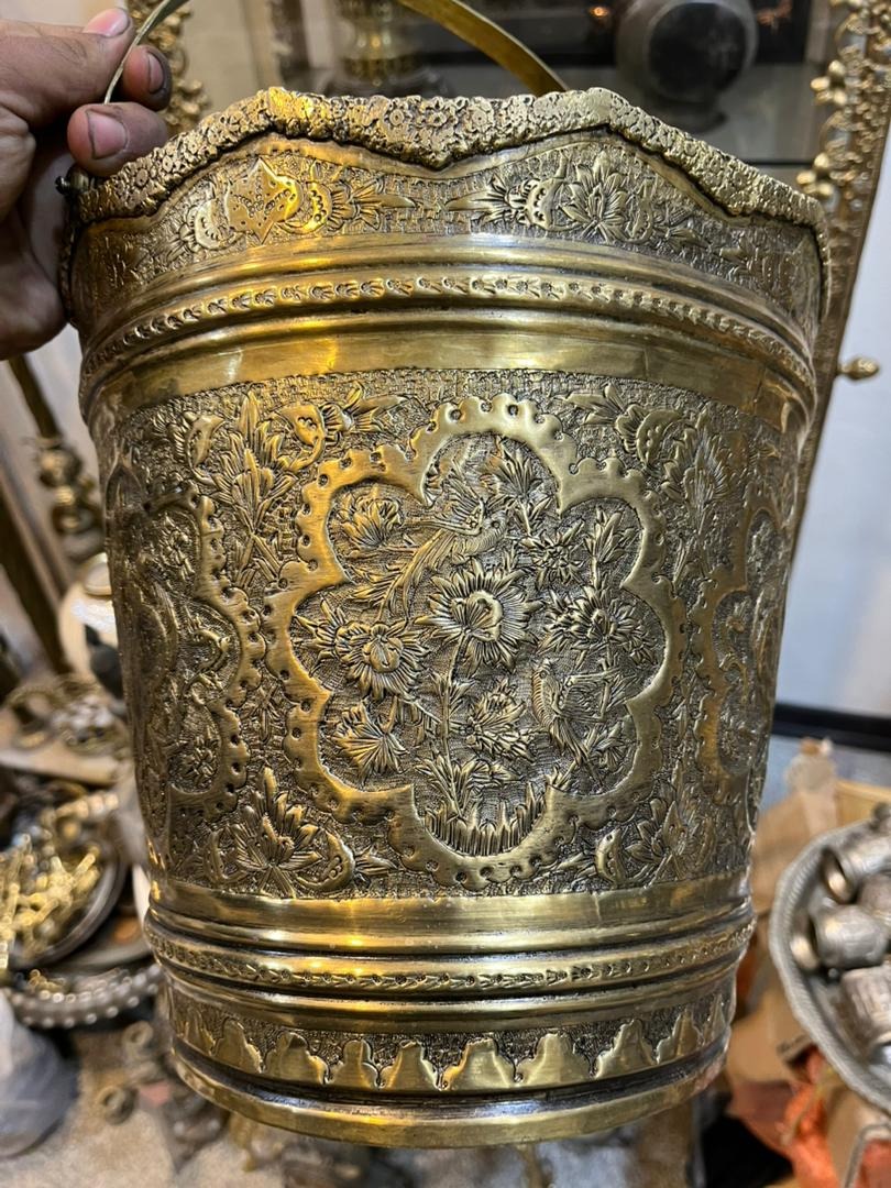 سطل برنجی تمام قلمزنی سبک شیراز خاص و کهنه سایز بزرگ