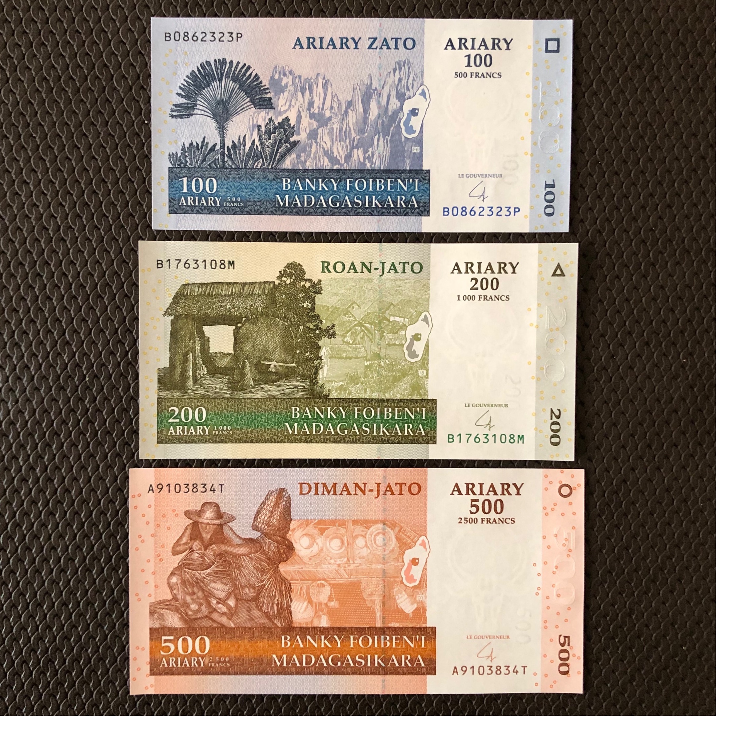 اسکناس100و200و500 آریاری ماداگاسکار شماره متفاوت