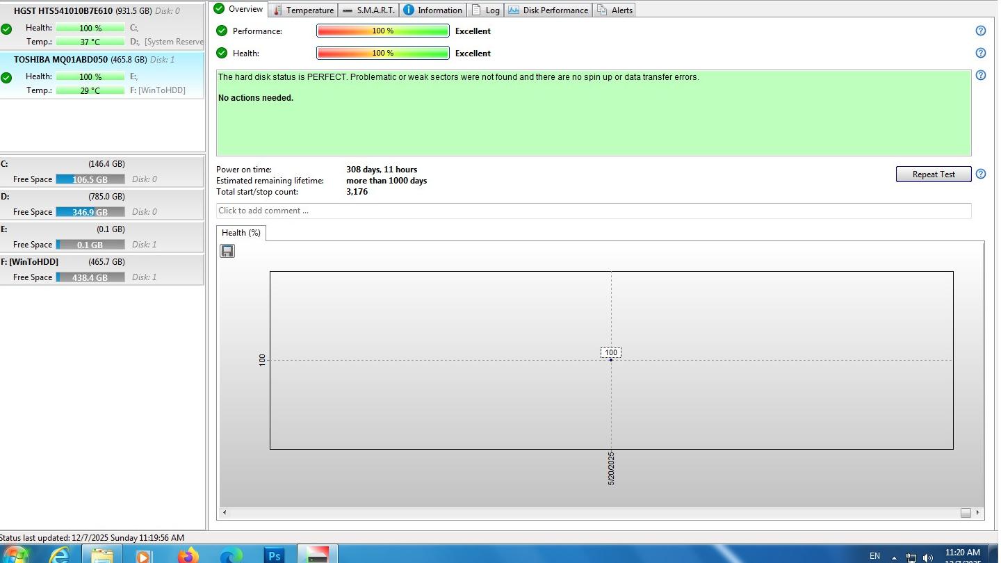 هارد دیسک لپ تاپ 500گیگ توشیبا Health %100