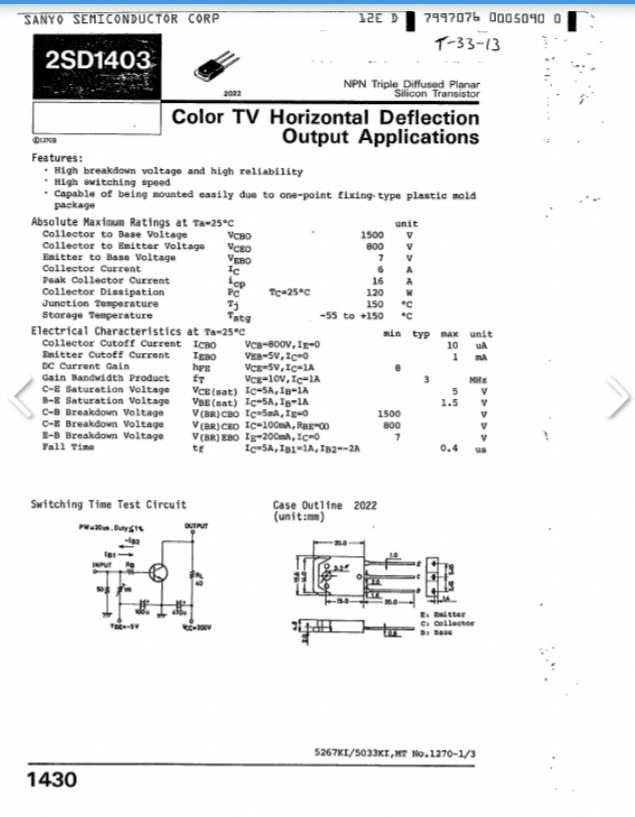 ترانزیستور 800V/6A/120W 2s D1403 اوریجینال SANYO
