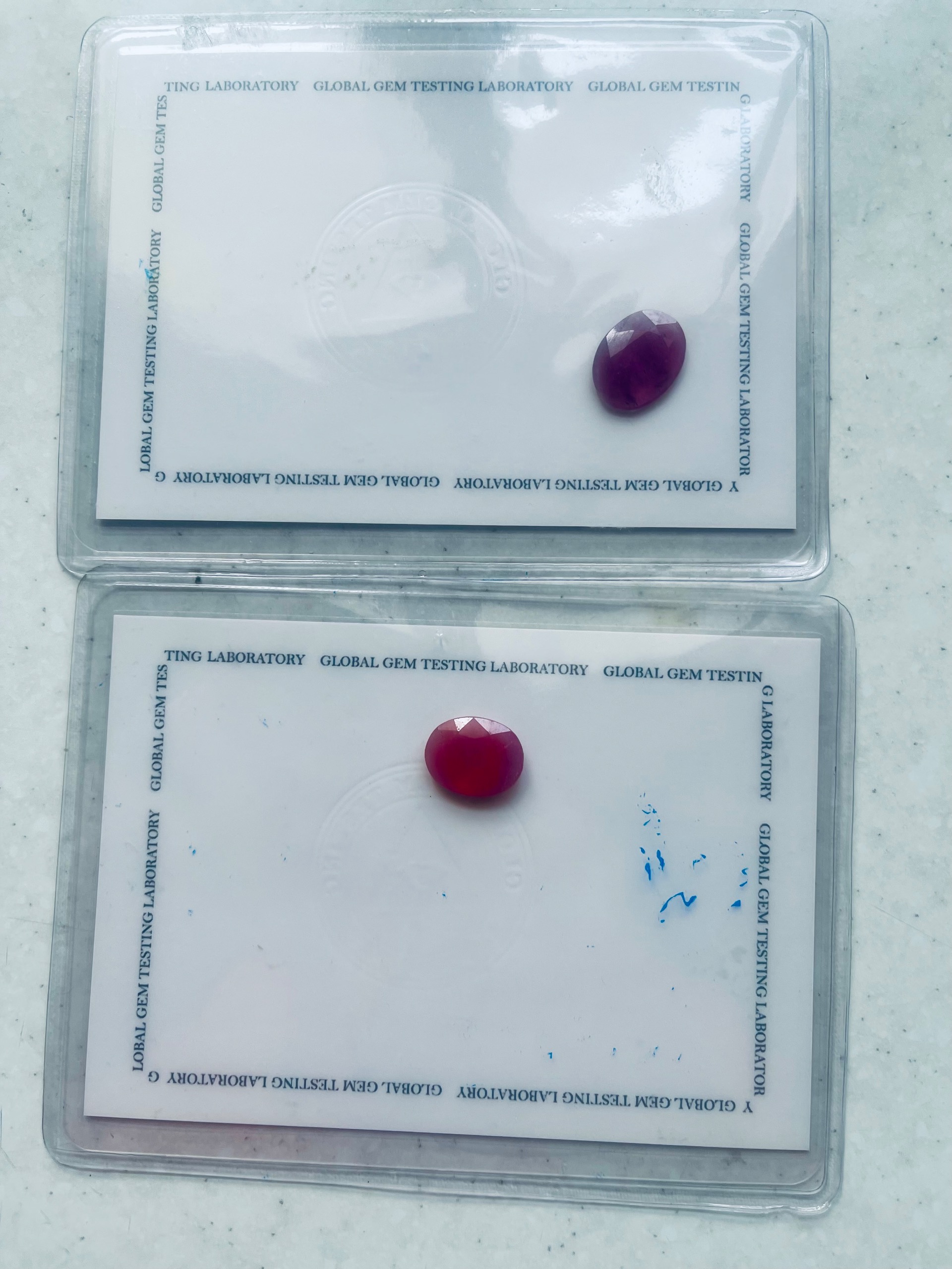 یاقوت برمه اصل طبیعی برمه شناسنامه دار دو قطعه به وزن یا دو قطعه 16.7 قیراط مطالق عکس بهترین مورد جهت سرمایه گذاری در سنگ جواهری فروش