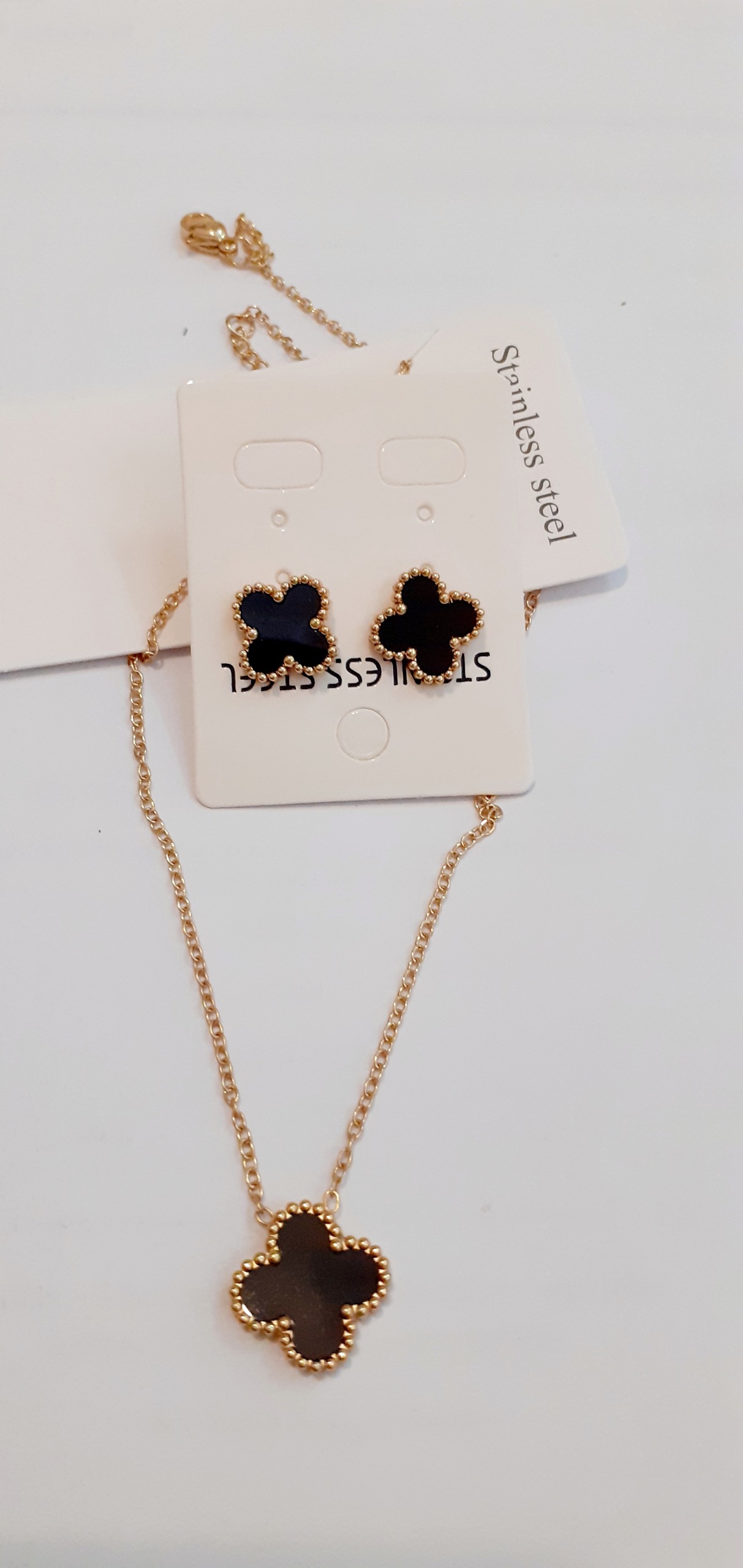 نیم ست گردنبند و گوشواره طرح ونکلیف مشکی