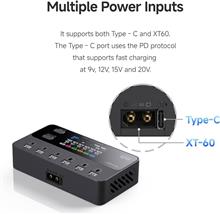 شارژ و دشارژ عالی، عملکرد بینظیر: جریان دشارژ تا 2.5 آمپر، توان تا 8 وات. عملکرد شارژ و دشارژ برای محافظت از باتریها. شارژر و دشارژر باتری 1S (حداکثر 2.5 آمپر در هر پورت).