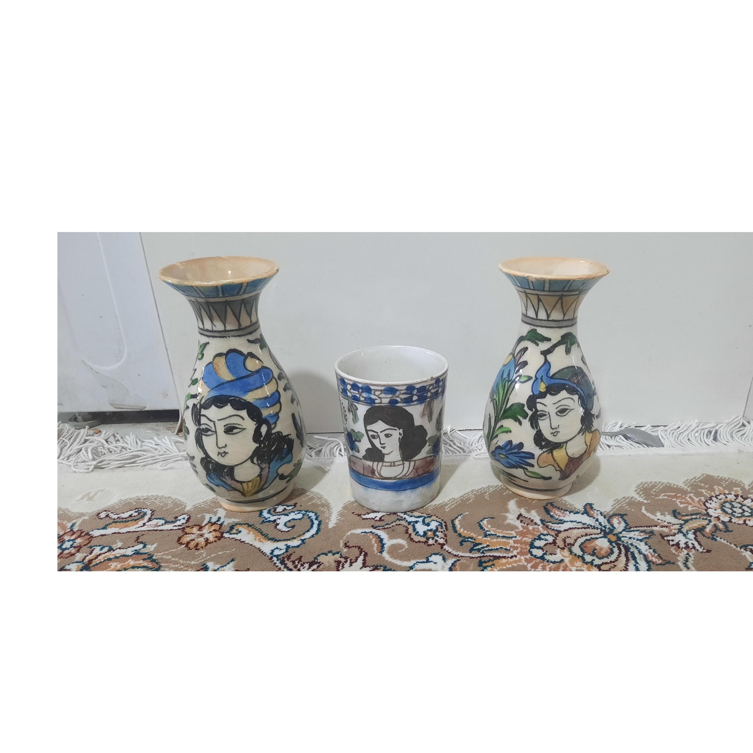 جفت گلدان و لیوان نطنز عبادی قدیمی