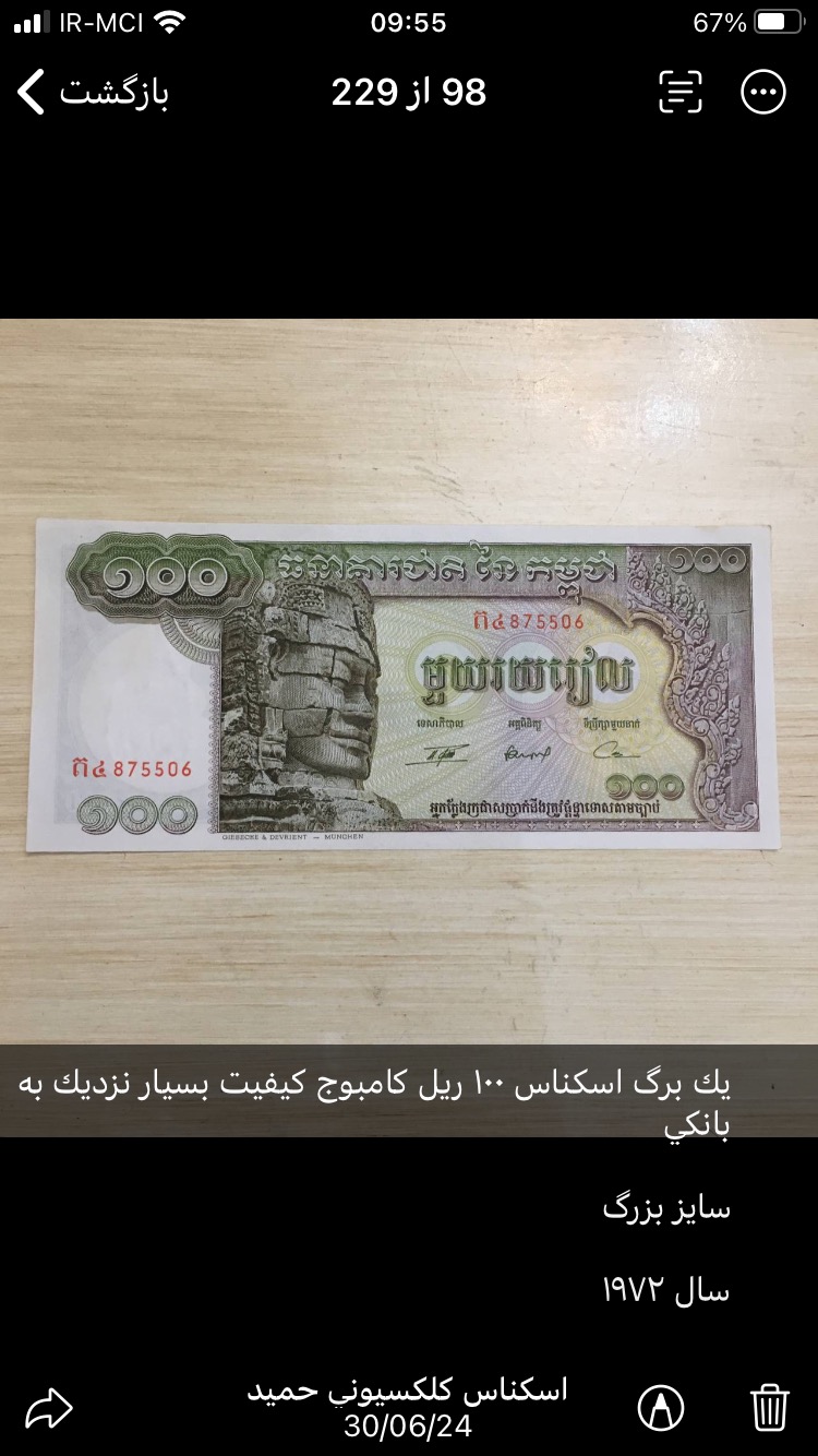 تک 100 ریل کامبوج کیفیت در حد بانکی سایز بزرگ