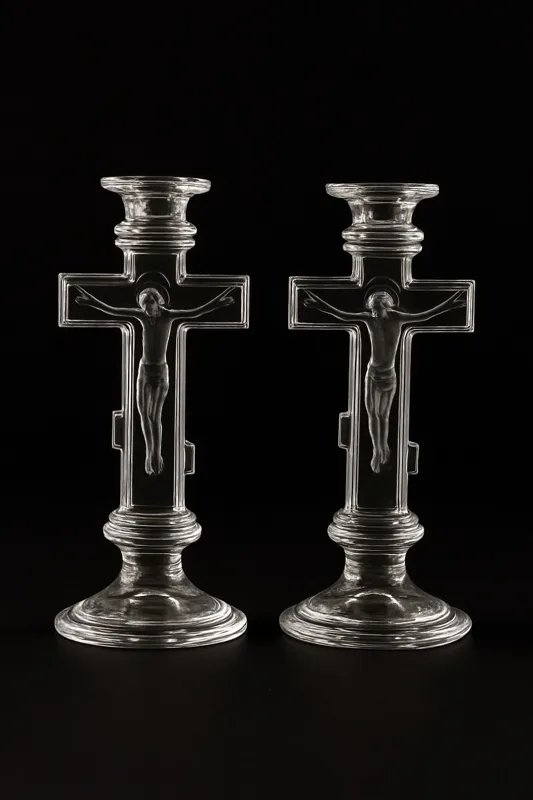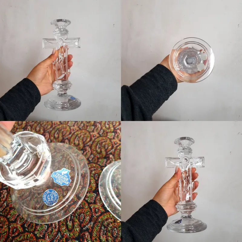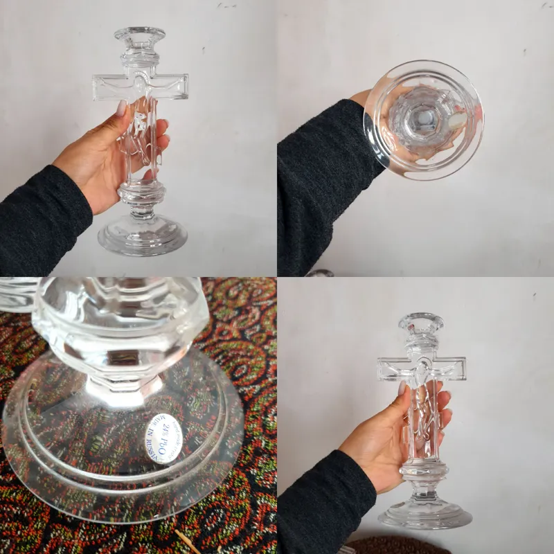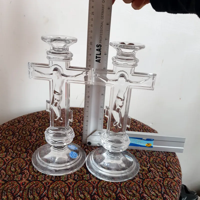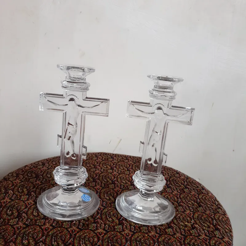 جفت شمعدان اصل کریستال مدل صلیب روسی