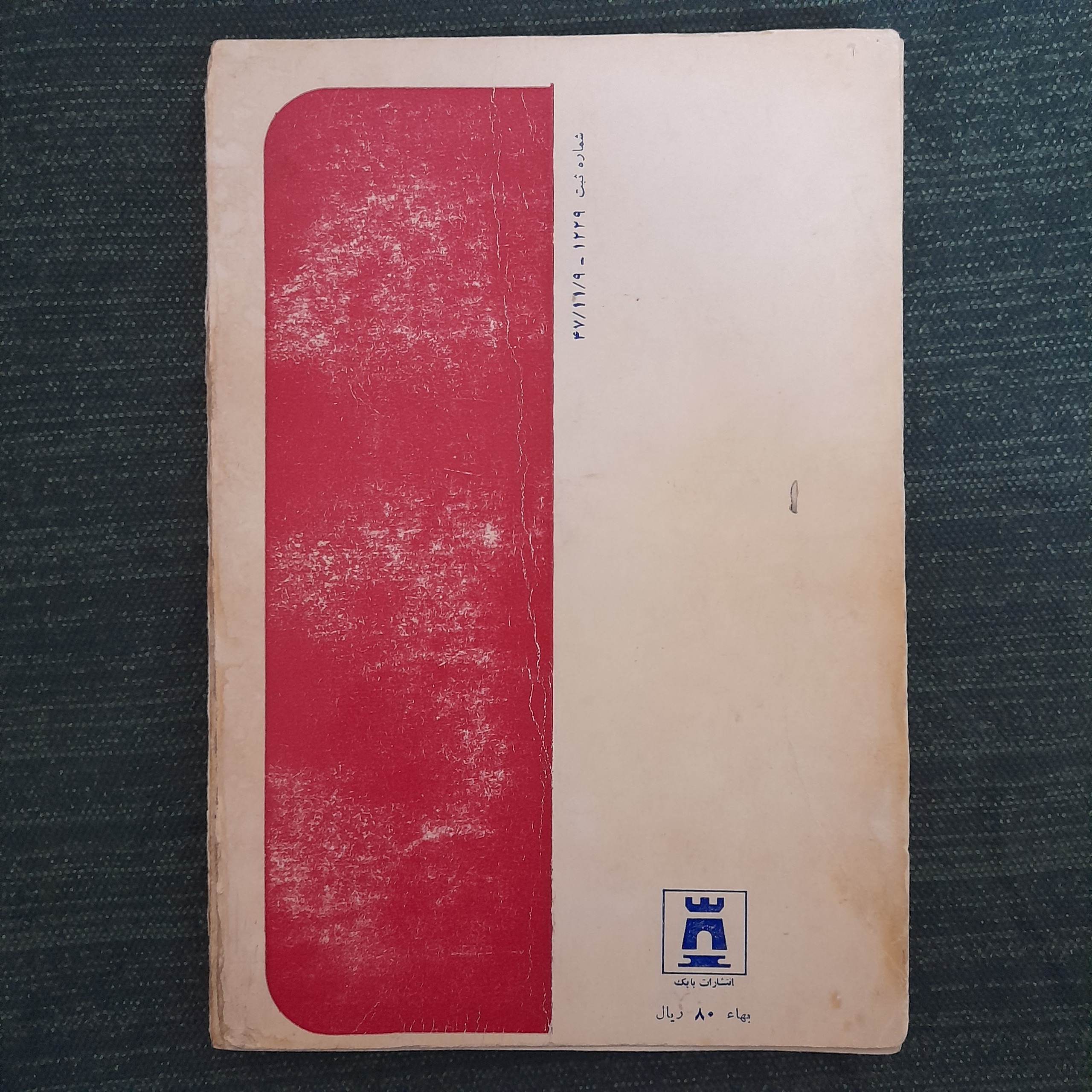 فرسودگی جلد، خط خطی با خوکار، شکاف شیرازه دارد.