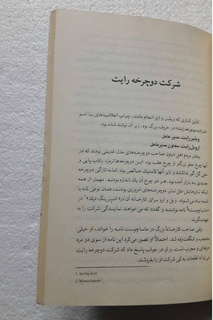 کتاب برادران رایت1378 بدون کسری است.شکستگی جلد را مشاهده می کنیداواخر کتاب لقی جزئی دارد.کتاب با قطع رقعی 126صفحه می باشد.